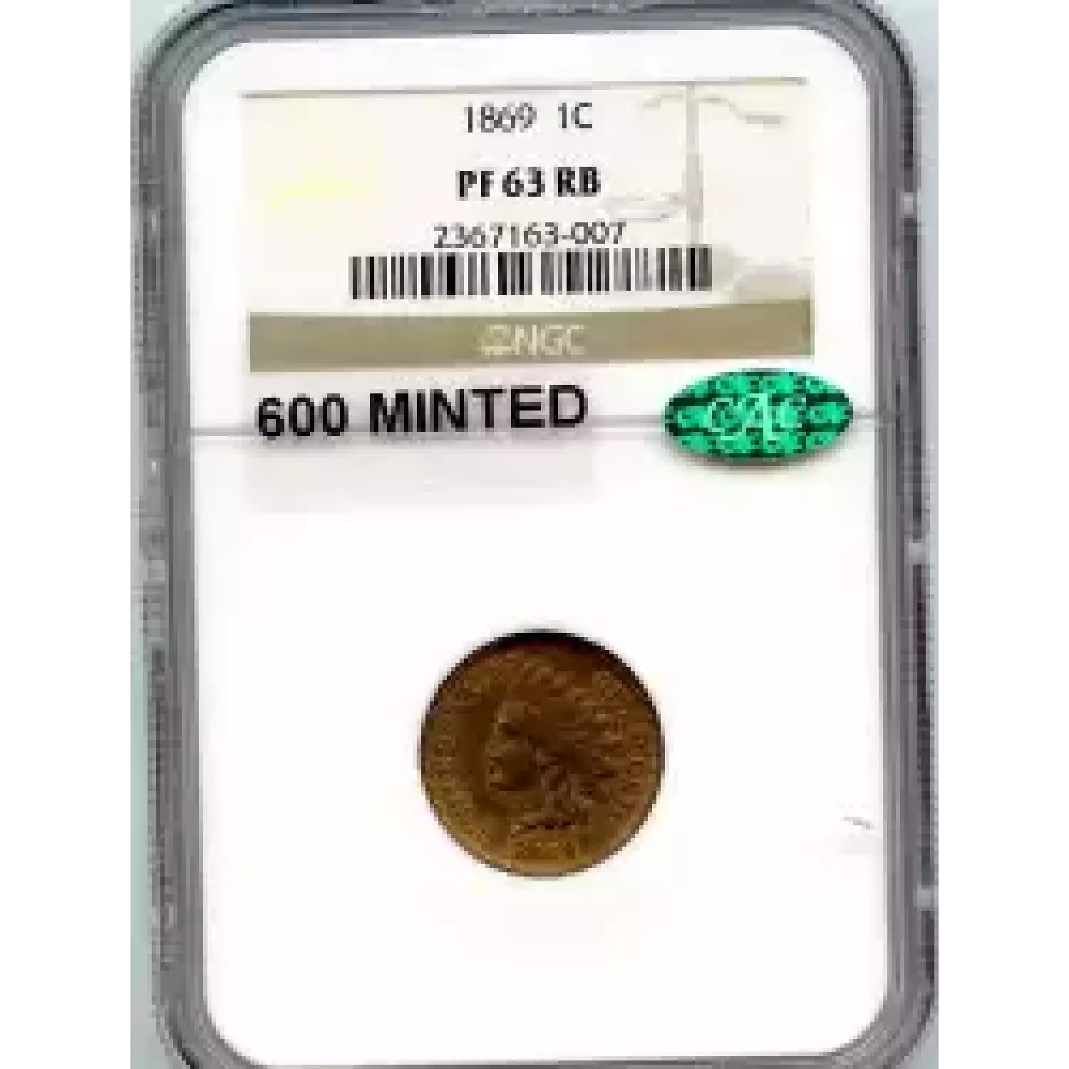 512607 | 1869-PR-65 Small Cents Lincoln, Memorial Reverse NGC PR-65 RB | NGC | PR-65 | Sold: 05/02/2019 | $1,600 |