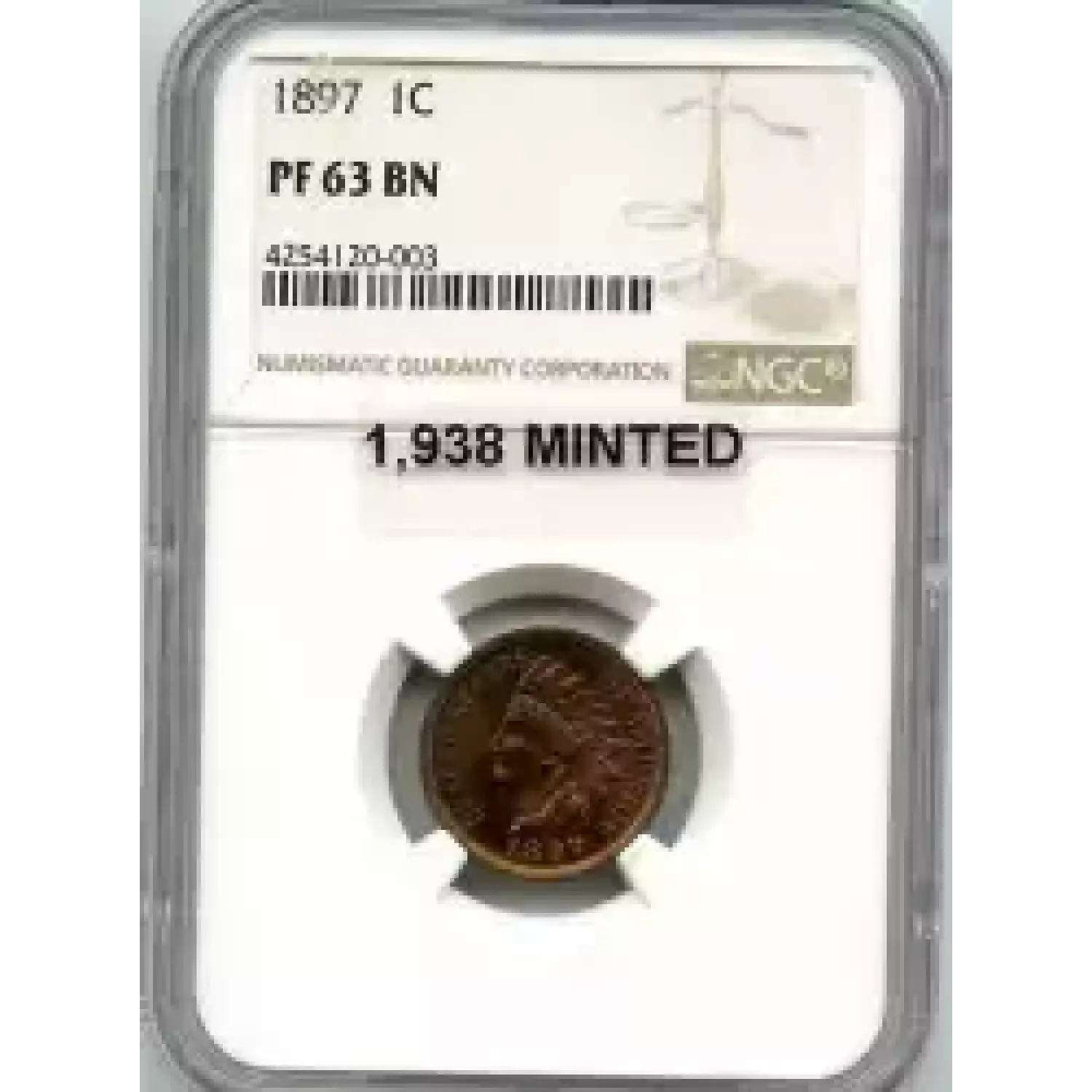513682 | 1897-PR-63 Small Cents Lincoln, Memorial Reverse NGC PR-63 RB | NGC | PR-63 | Sold: 26/03/2020 | $235 |