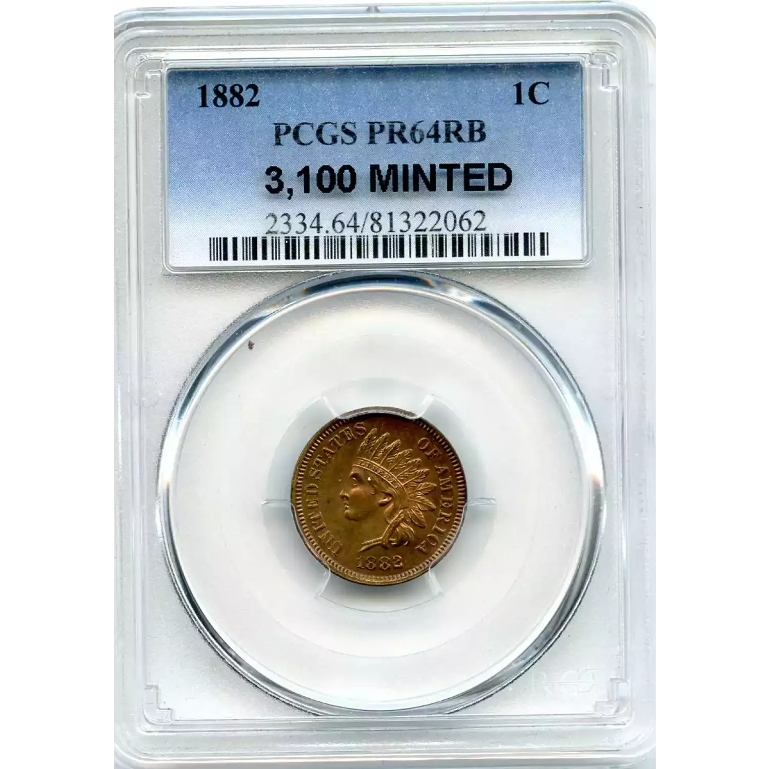 510698 | 1882-PR-64 Small Cents Lincoln, Memorial Reverse PCGS PR-64 RB | PCGS | PR-64 | Sold: 01/01/2017 | $450 |