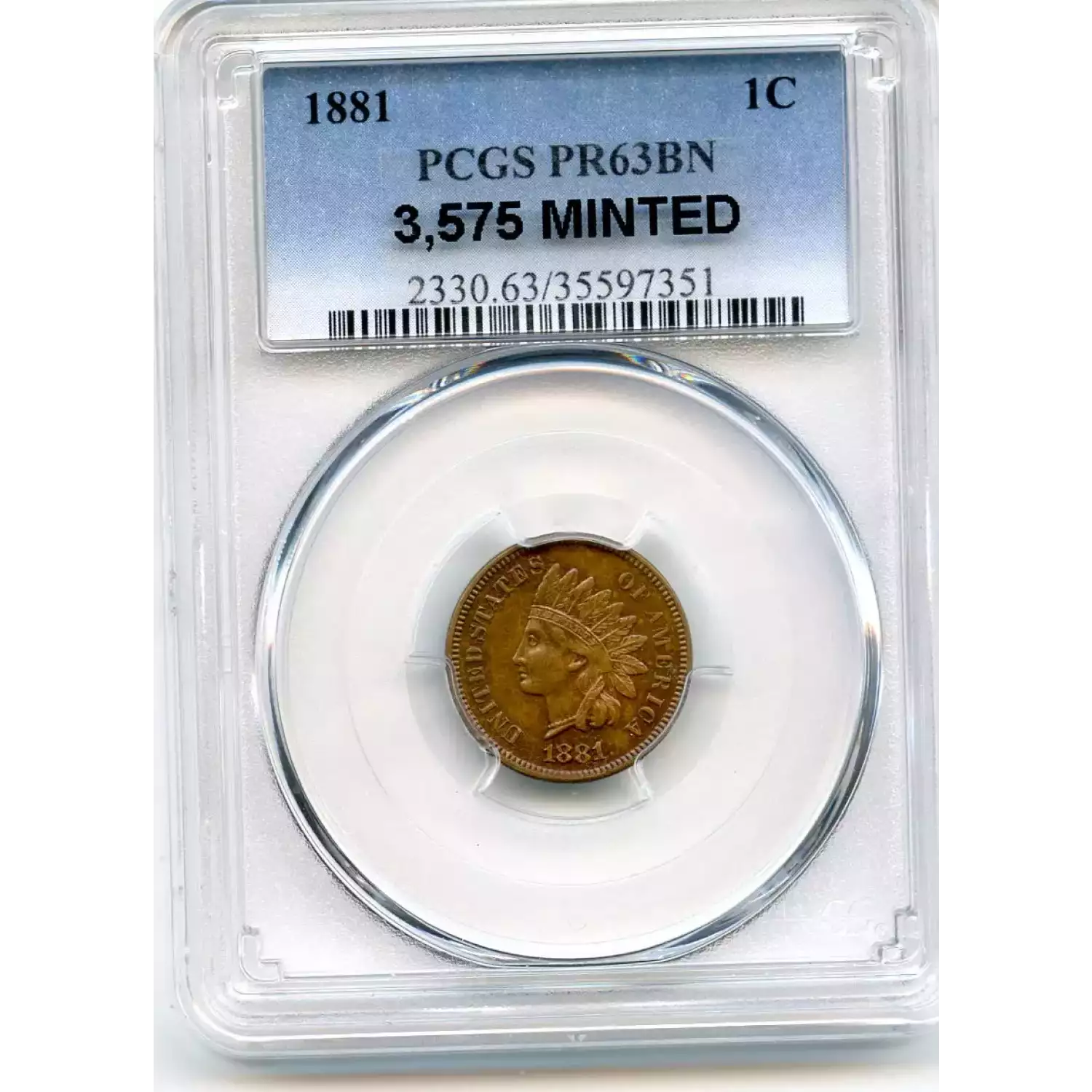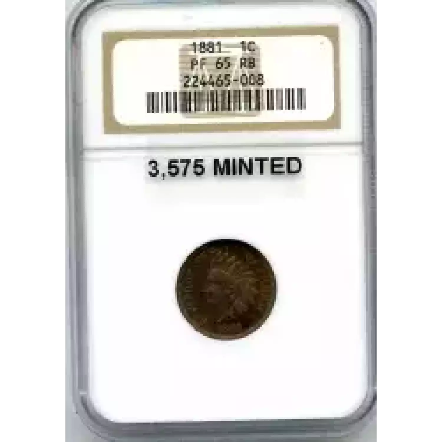 512203 | 1881-PR-63 Small Cents Lincoln, Memorial Reverse PCGS PR-63 BN | PCGS | PR-63 | Sold: 03/12/2018 | $225 |