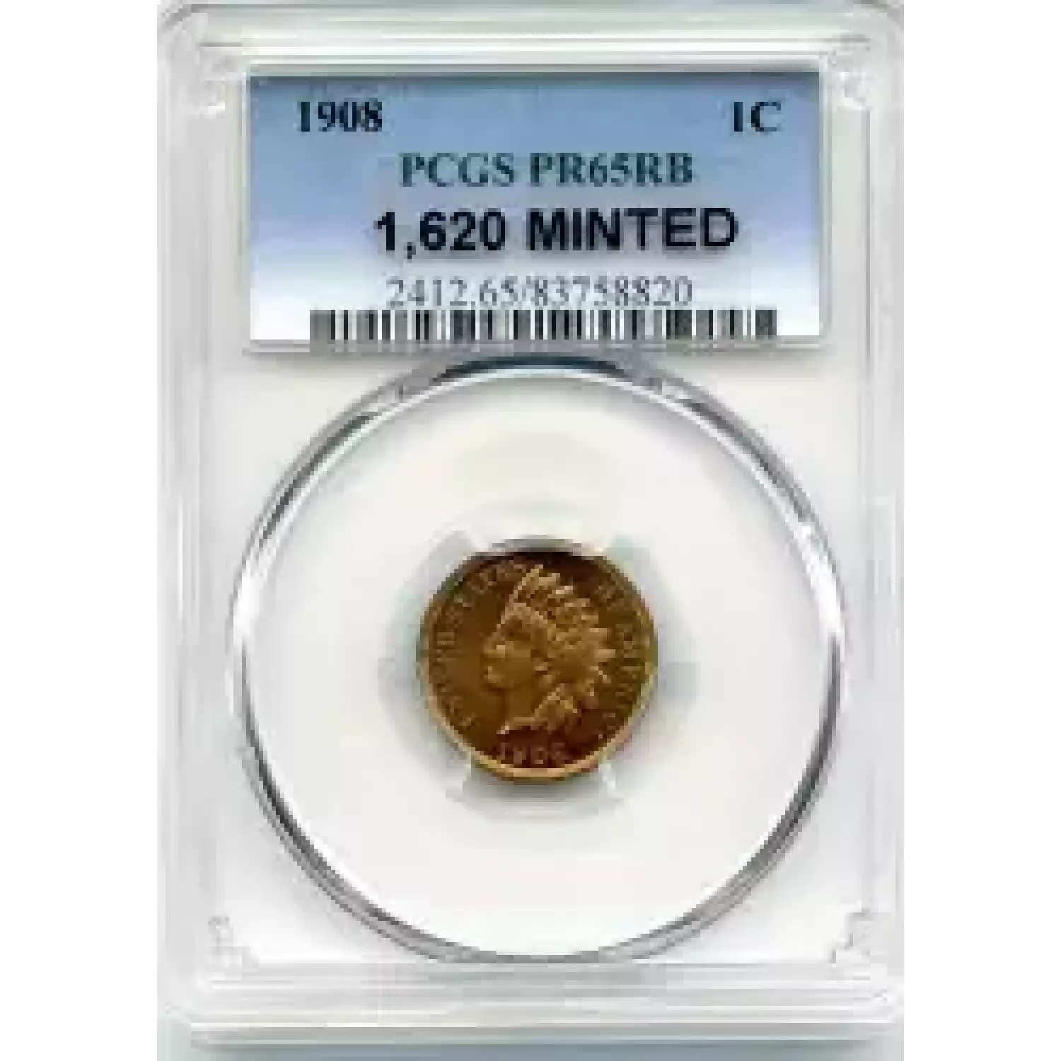 510735 | 1908-PR-65 Small Cents Lincoln, Memorial Reverse PCGS PR-65 RB | PCGS | PR-65 | Sold: 05/03/2018 | $500 |