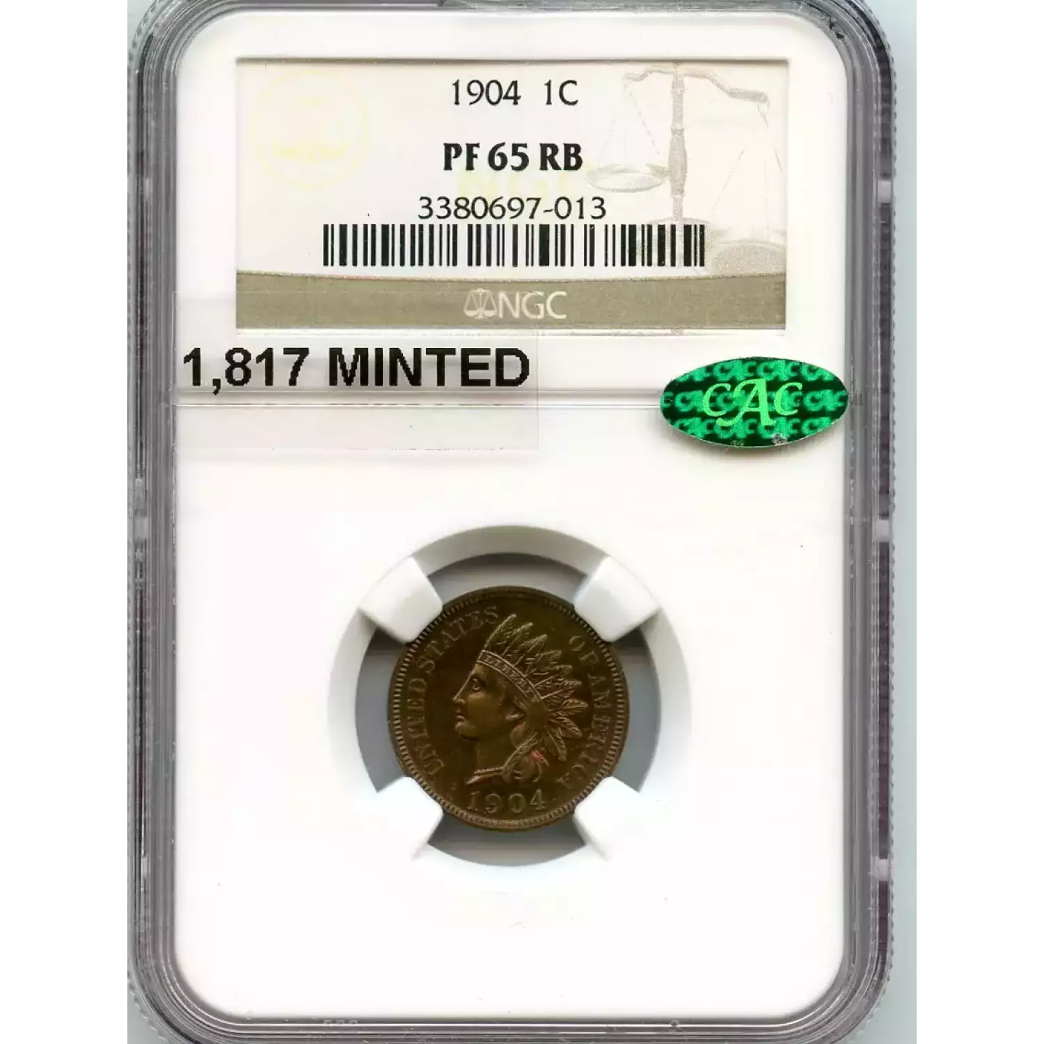 510175 | 1902-PF-64 Small Cents Lincoln, Memorial Reverse NGC PF-64 RB CAC | NGC | PF-64 | Sold: 11/07/2017 | $405 |