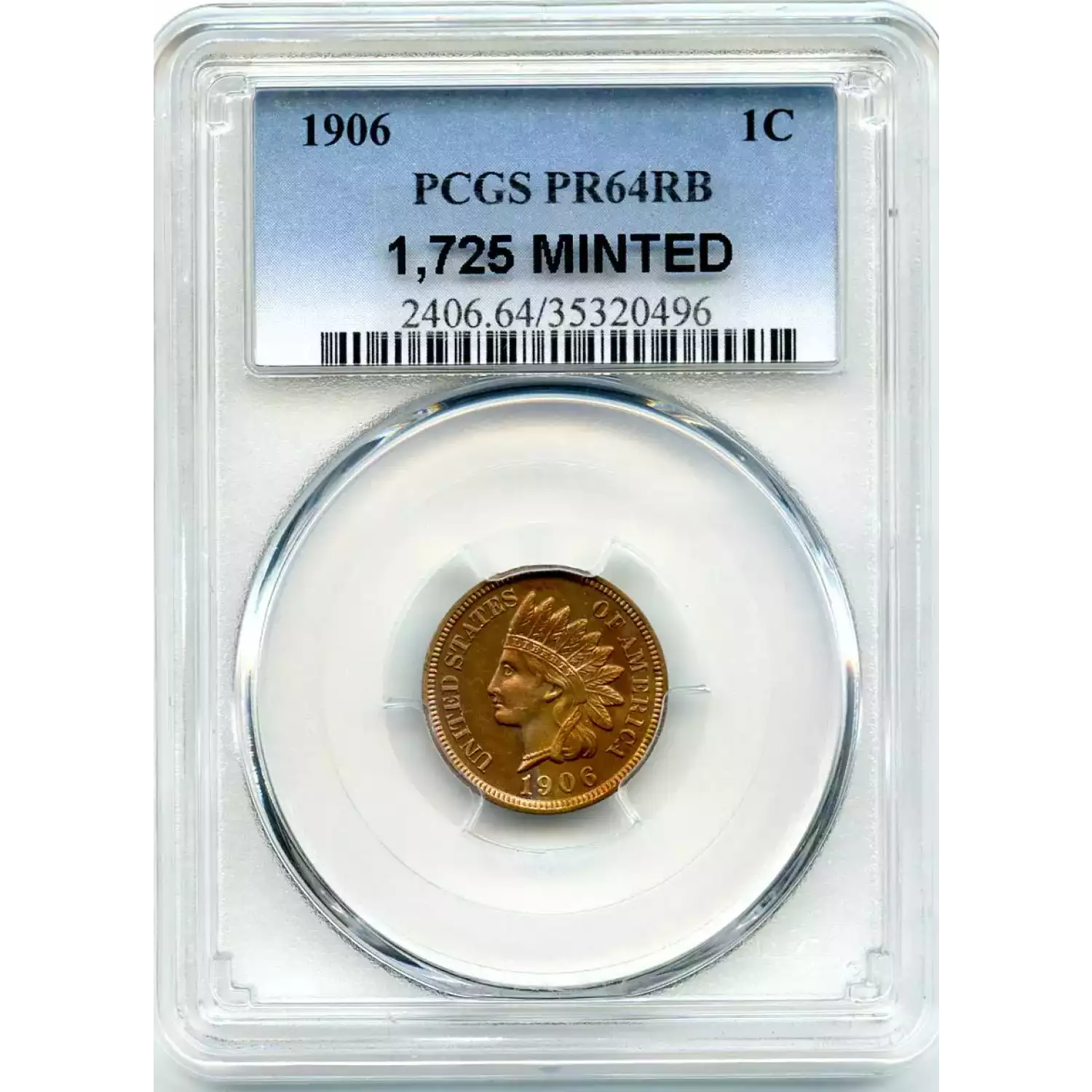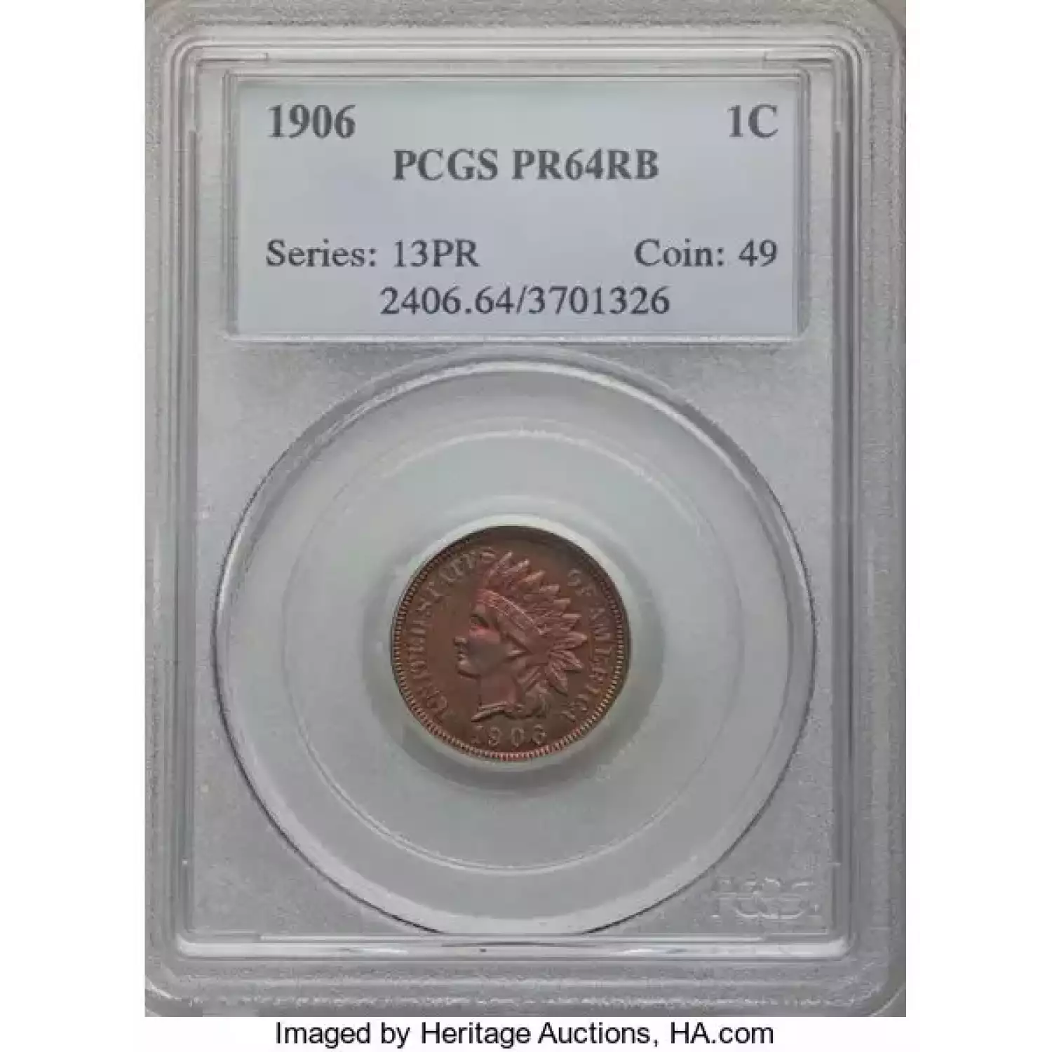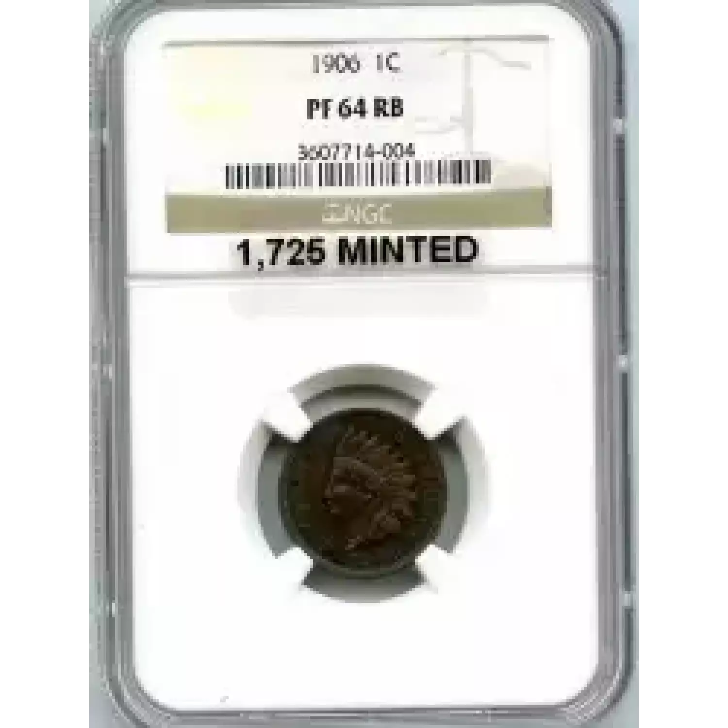 512583 | 1906-PR-64 Small Cents Lincoln, Memorial Reverse PCGS PR-64 RB | PCGS | PR-64 | Sold: 05/02/2019 | $350 |