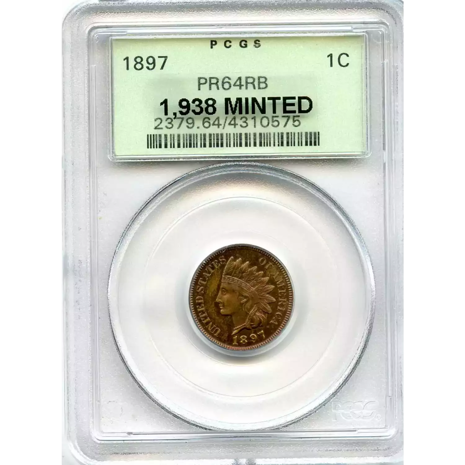 512889 | 1897-PR-64 Small Cents Lincoln, Memorial Reverse PCGS PR-64 RB | PCGS | PR-64 | Sold: 04/05/2019 | $400 |
