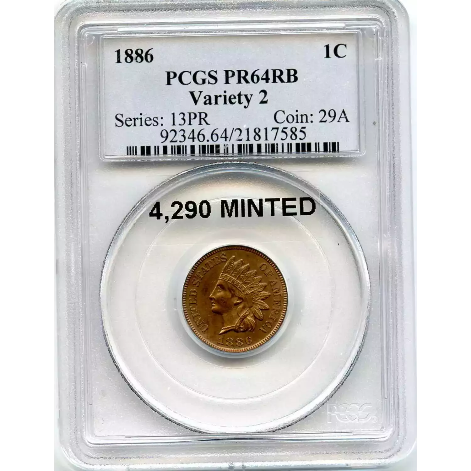 511926 | 1886-PR-64 Small Cents Lincoln, Memorial Reverse PCGS PR-64 RB | PCGS | PR-64 | Sold: 12/12/2018 | $1,000 |