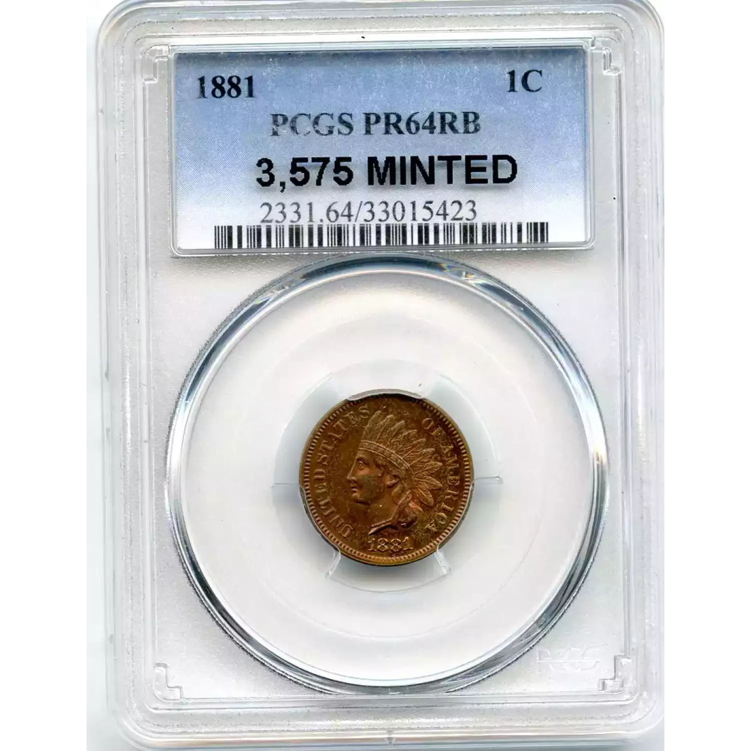 507057 | 1881-PR-64 Small Cents Lincoln, Memorial Reverse PCGS PR-64 RB | PCGS | PR-64 | Sold: 10/11/2013 | $300 |