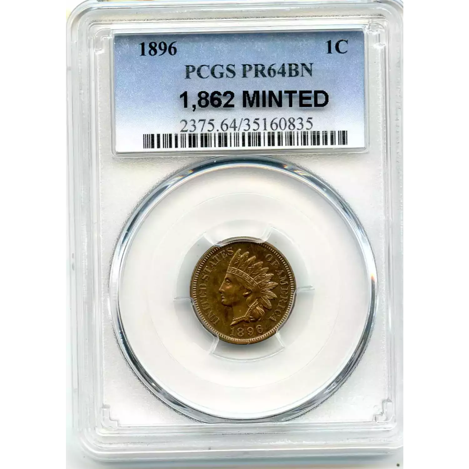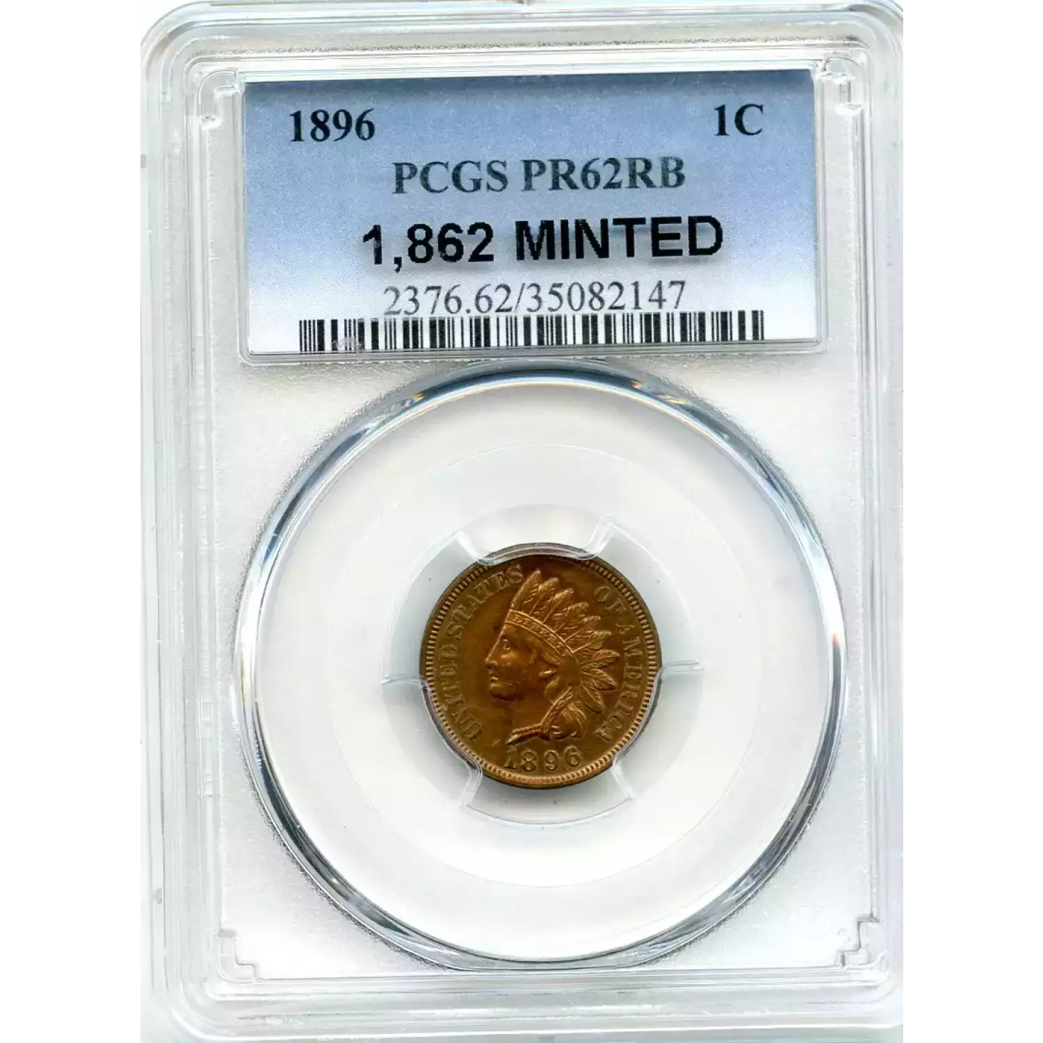 511948 | 1896-PR-62 Small Cents Lincoln, Memorial Reverse PCGS PR-62 RB | PCGS | PR-62 | Sold: 09/12/2018 | $247.50 |