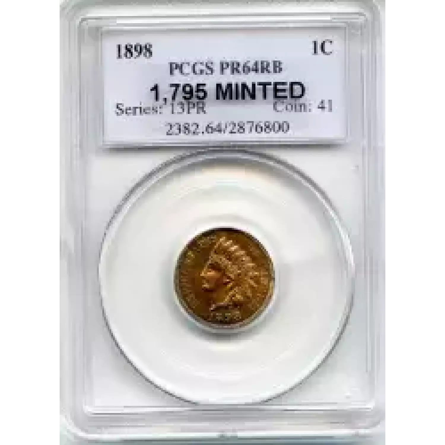 509734 | 1898-PR-64 Small Cents Lincoln, Memorial Reverse PCGS PR-64 RB | PCGS | PR-64 | Sold: 11/08/2016 | $425 |