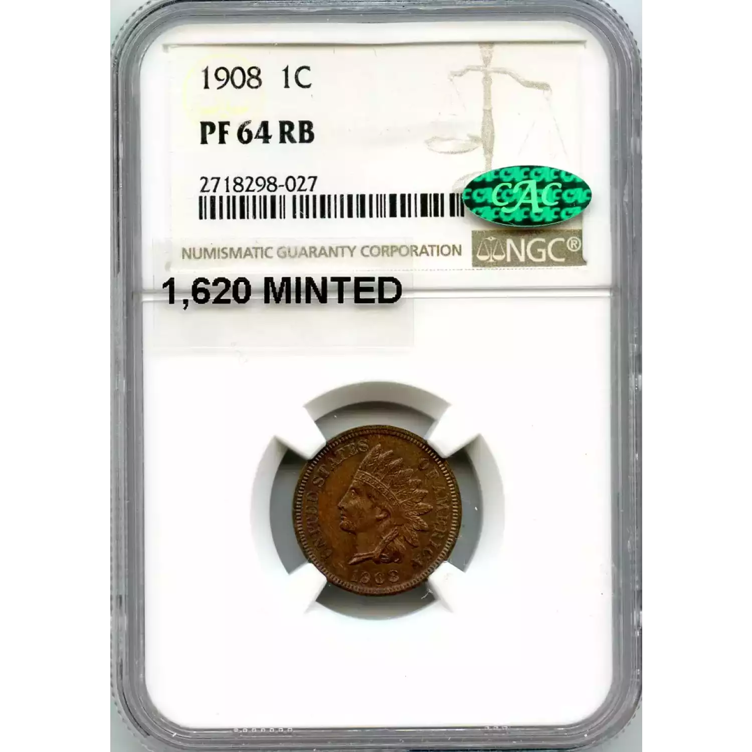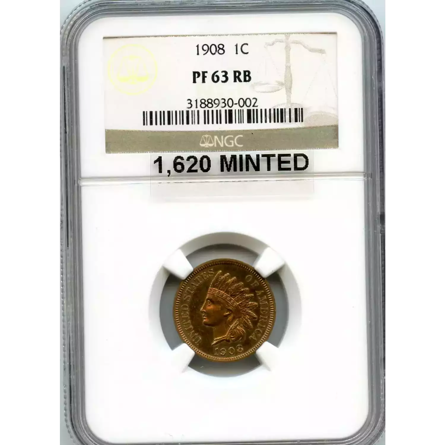 512044 | 1908-PR-64 Small Cents Lincoln, Memorial Reverse NGC PR-64 RB CAC | NGC | PR-64 | Sold: 15/04/2019 | $475 |