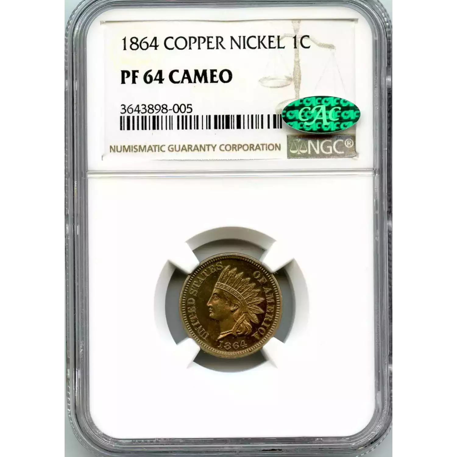 511962 | 1864-PR-64 Small Cents Lincoln, Memorial Reverse NGC PR-64 CAM CAC | NGC | PR-64 | Sold: 05/08/2018 | $1,600 |