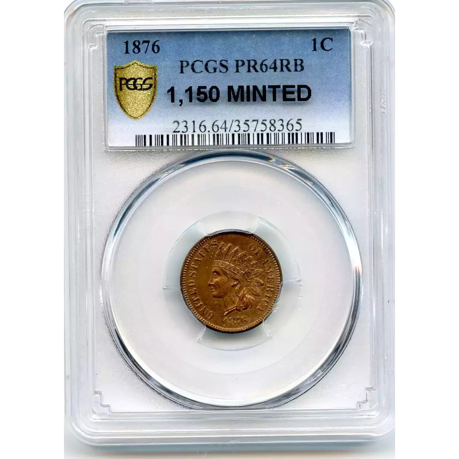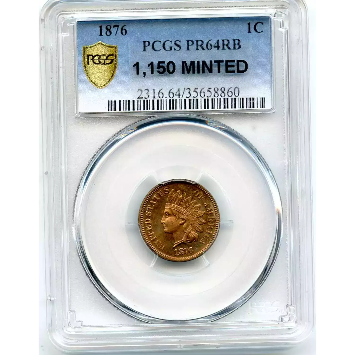 512191 | 1876-PR-64 Small Cents Lincoln, Memorial Reverse PCGS PR-64 RB | PCGS | PR-64 | Sold: 04/10/2018 | $700 |