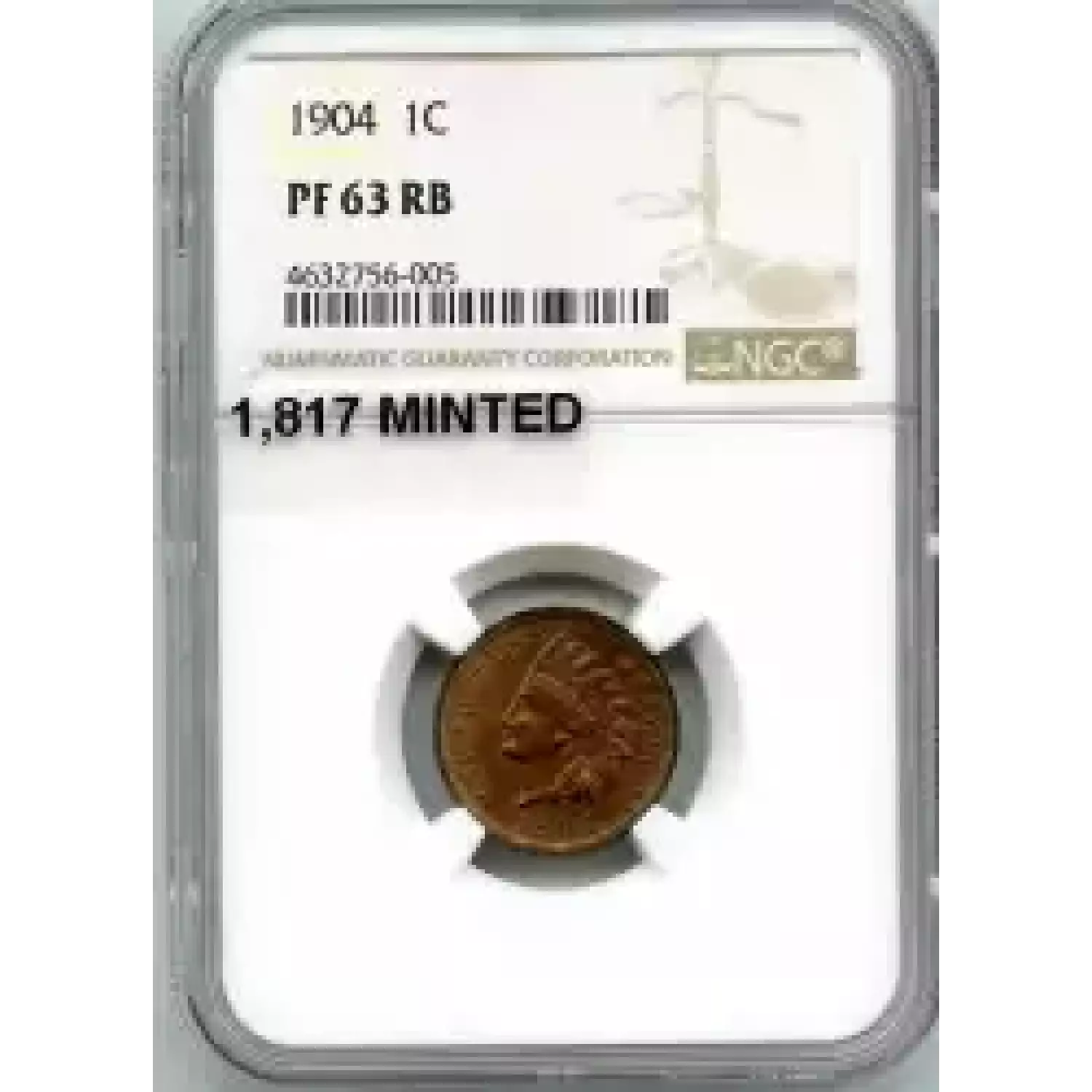 512507 | 1904-PR-63 Small Cents Lincoln, Memorial Reverse NGC PR-63 RB | NGC | PR-63 | Sold: 09/06/2019 | $260 |