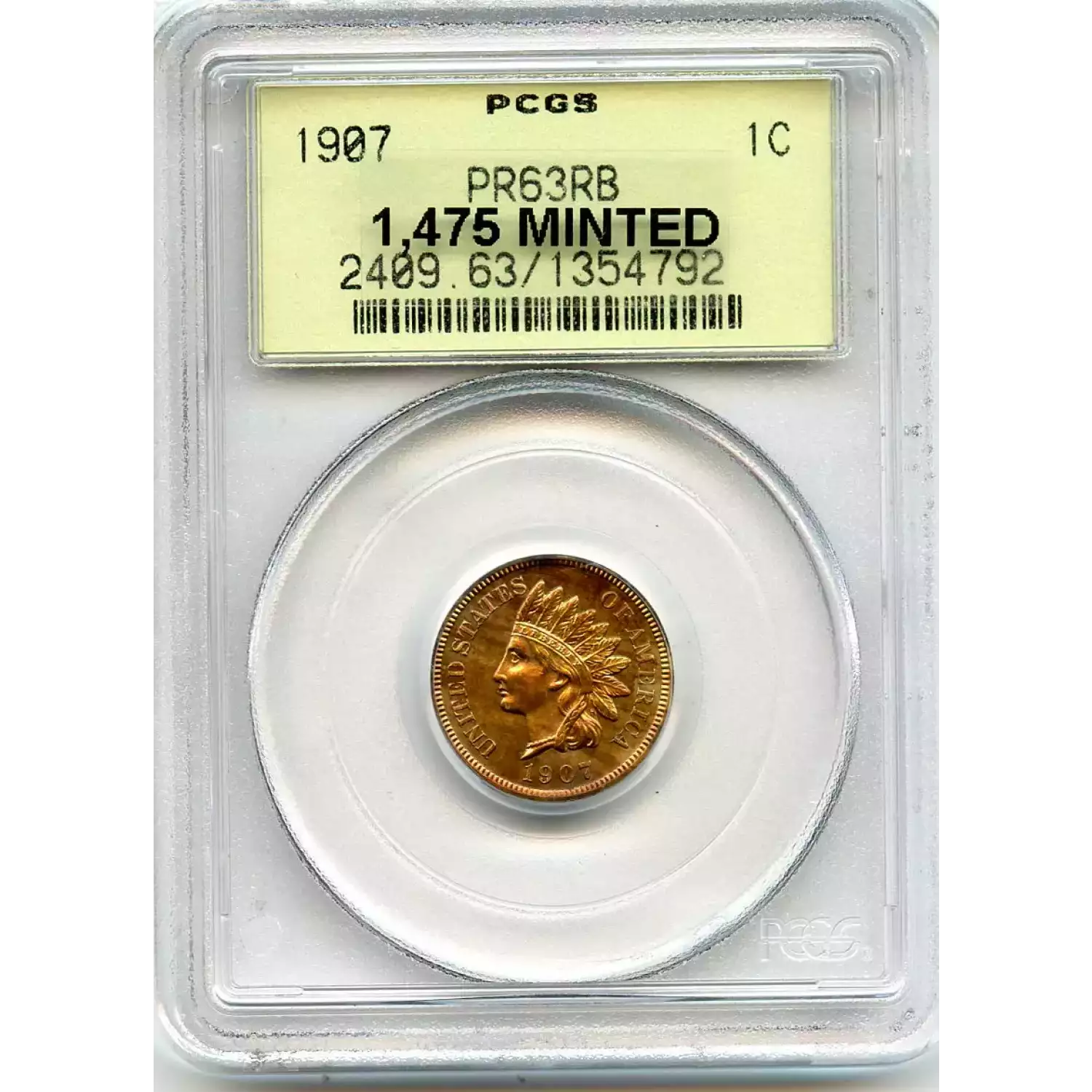 512575 | 1907-PR-63 Small Cents Lincoln, Memorial Reverse PCGS PR-63 RB | PCGS | PR-63 | Sold: 16/07/2019 | $350 |
