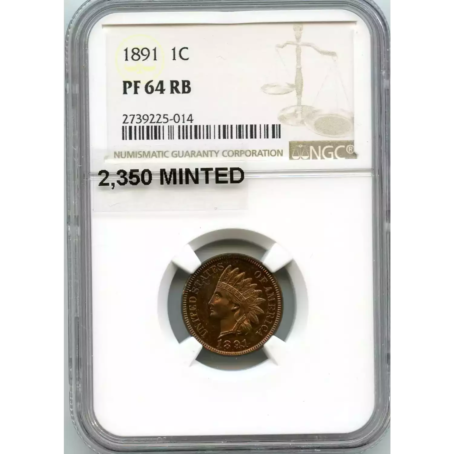 512469 | 1891-PR-64 Small Cents Lincoln, Memorial Reverse NGC PR-64 RB | NGC | PR-64 | Sold: 06/01/2019 | $750 |
