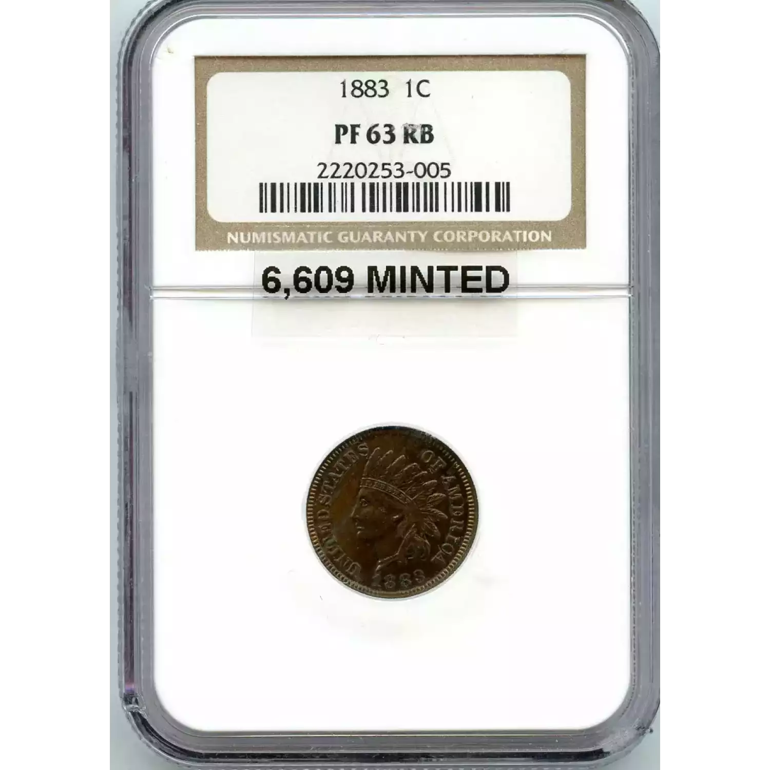 512855 | 1883-PR-63 Small Cents Lincoln, Memorial Reverse NGC PR-63 RB | NGC | PR-63 | Sold: 07/04/2019 | $260 |