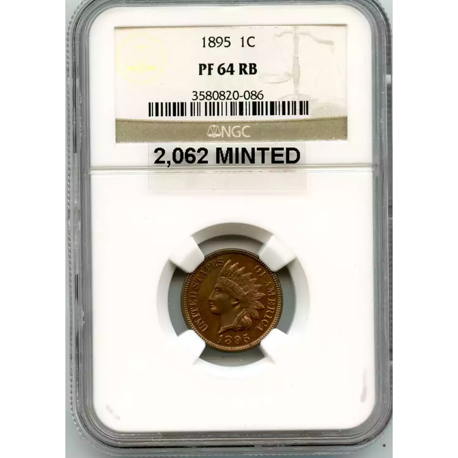 513201 | 1895-PR-63 Small Cents Lincoln, Memorial Reverse PCGS PR-63 RB | PCGS | PR-63 | Sold: 03/12/2019 | $255 |