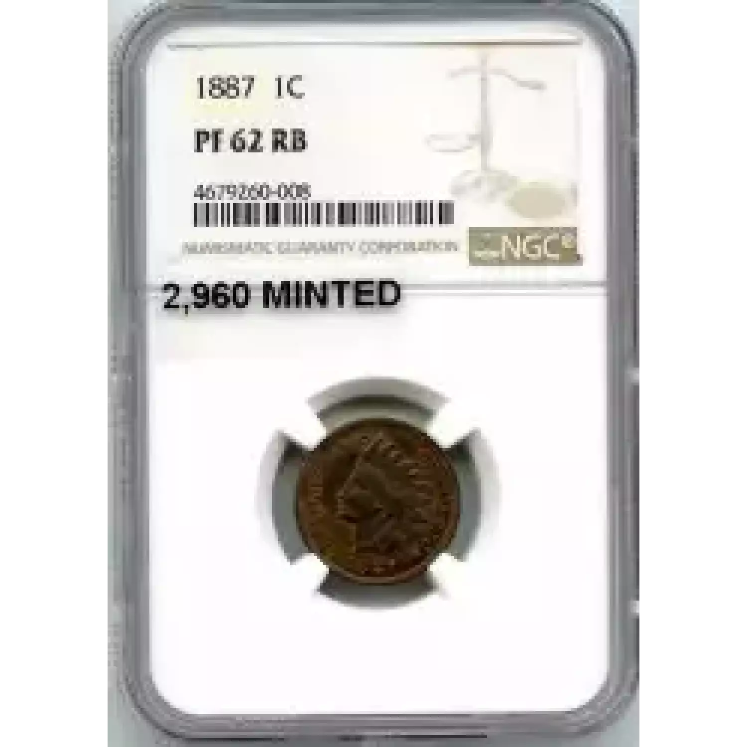 512883 | 1887-PR-62 Small Cents Lincoln, Memorial Reverse NGC PR-62 RB | NGC | PR-62 | Sold: 30/04/2019 | $225 |