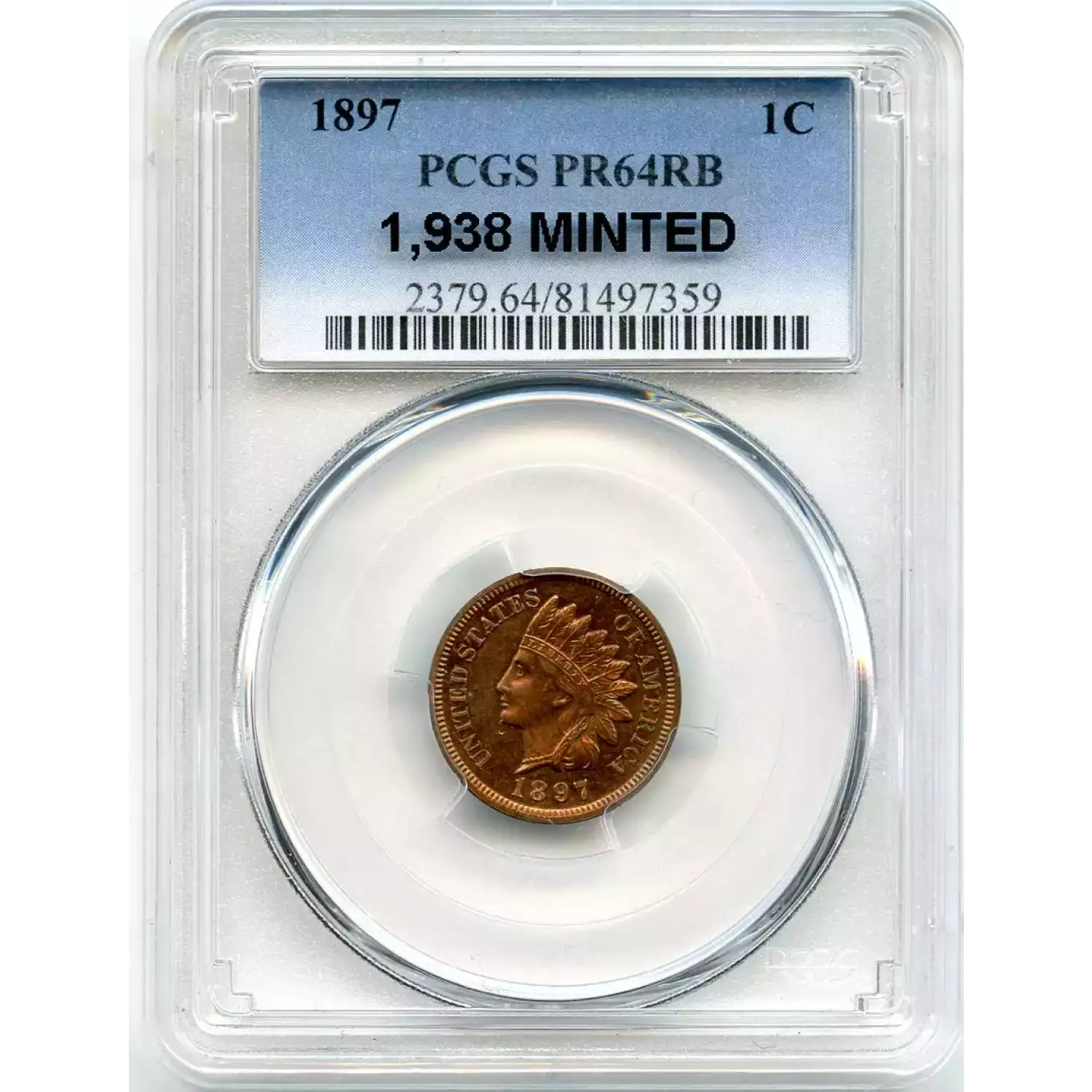 509165 | 1897-PR-64 Small Cents Lincoln, Memorial Reverse PCGS PR-64 RB | PCGS | PR-64 | Sold: 10/01/2016 | $380 |