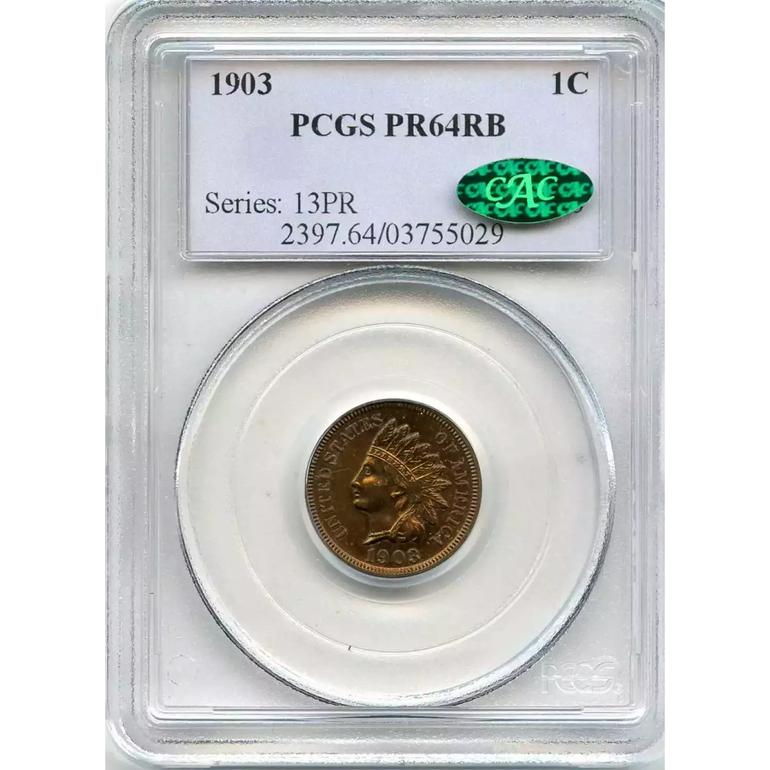 513091 | 1903-PR-64 Small Cents Lincoln, Memorial Reverse NGC PR-64 RB | NGC | PR-64 | Sold: 10/01/2021 | $415 |