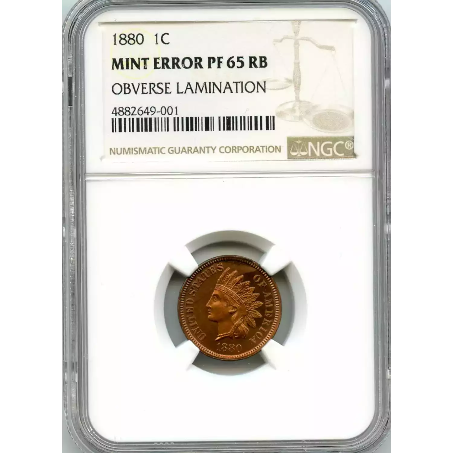 513299 | 1880-PR-65 Small Cents Lincoln, Memorial Reverse NGC PR-65 RB | NGC | PR-65 | Sold: 11/09/2019 | $825 |