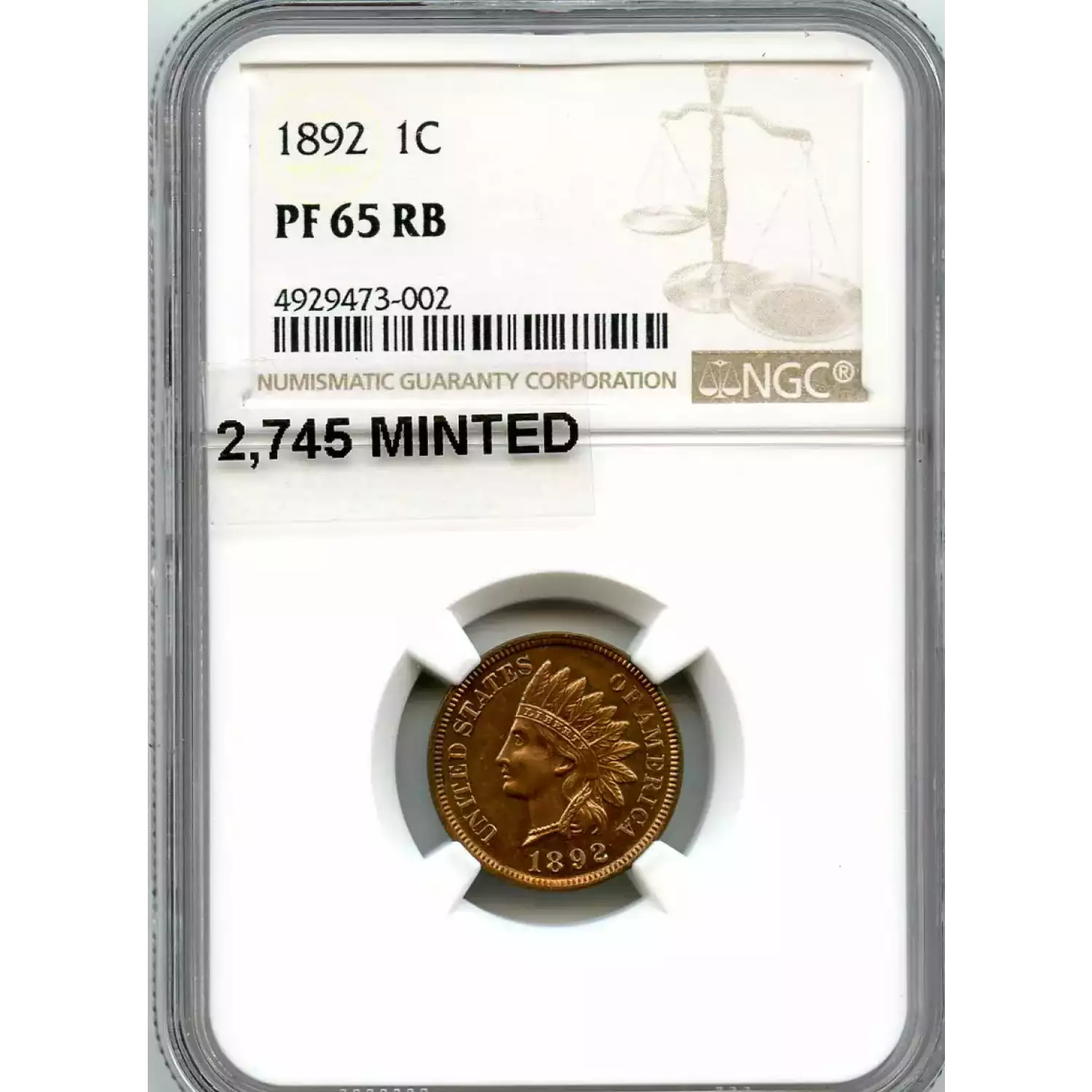513334 | 1892-PR-65 Small Cents Lincoln, Memorial Reverse NGC PR-65 RB | NGC | PR-65 | Sold: 17/07/2020 | $650 |