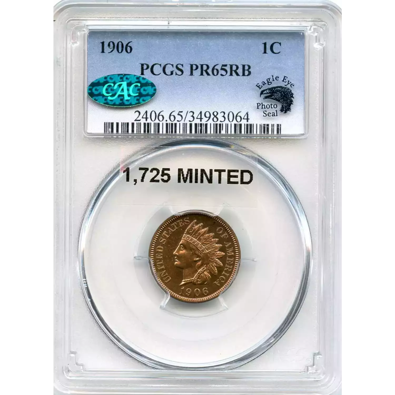 513398 | 1906-PR-65 Small Cents Lincoln, Memorial Reverse PCGS PR-65 RB CAC | PCGS | PR-65 | Sold: 14/12/2019 | $675 |