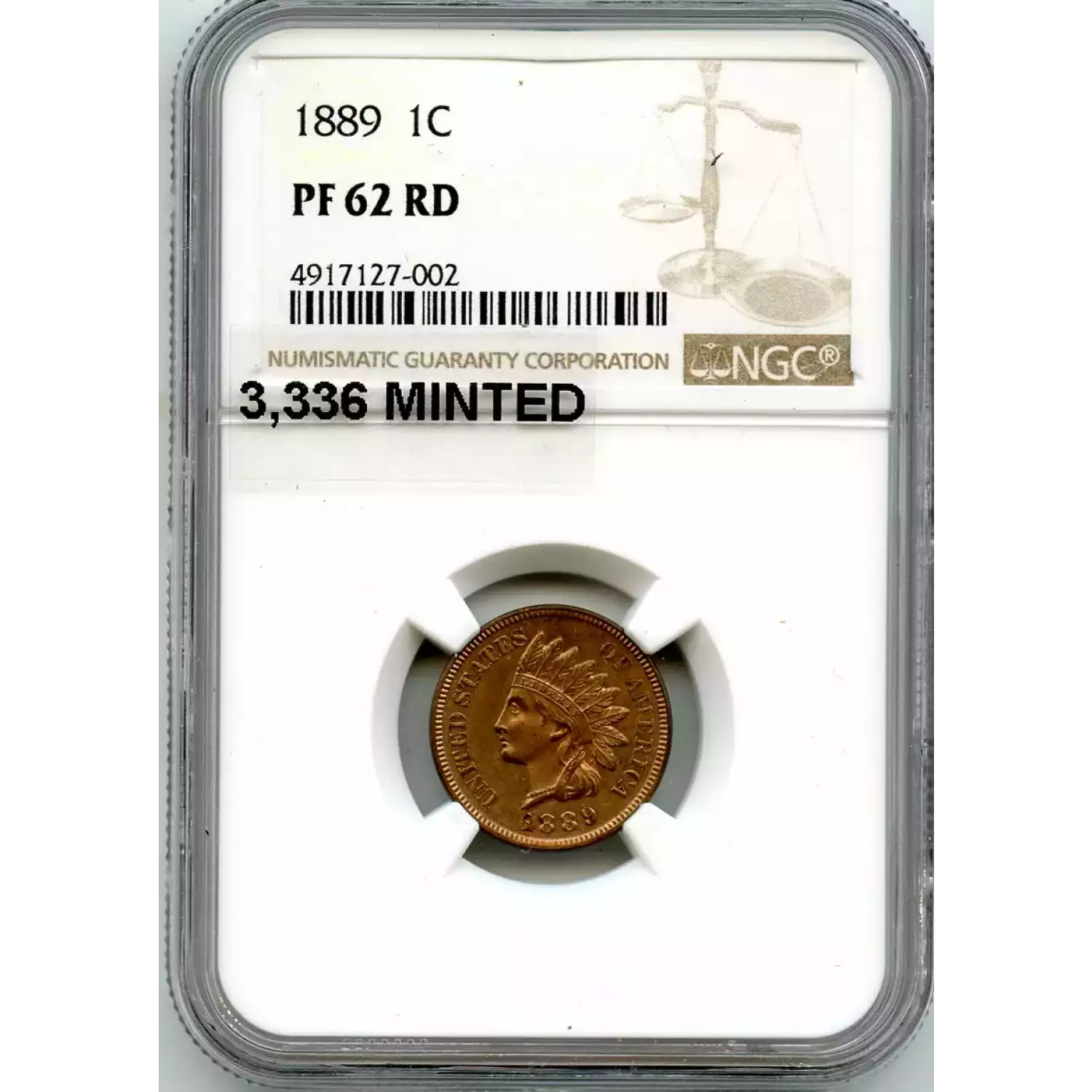 513440 | 1889-PR-62 Small Cents Lincoln, Memorial Reverse NGC PR-62 RD | NGC | PR-62 | Sold: 29/09/2020 | $375 |