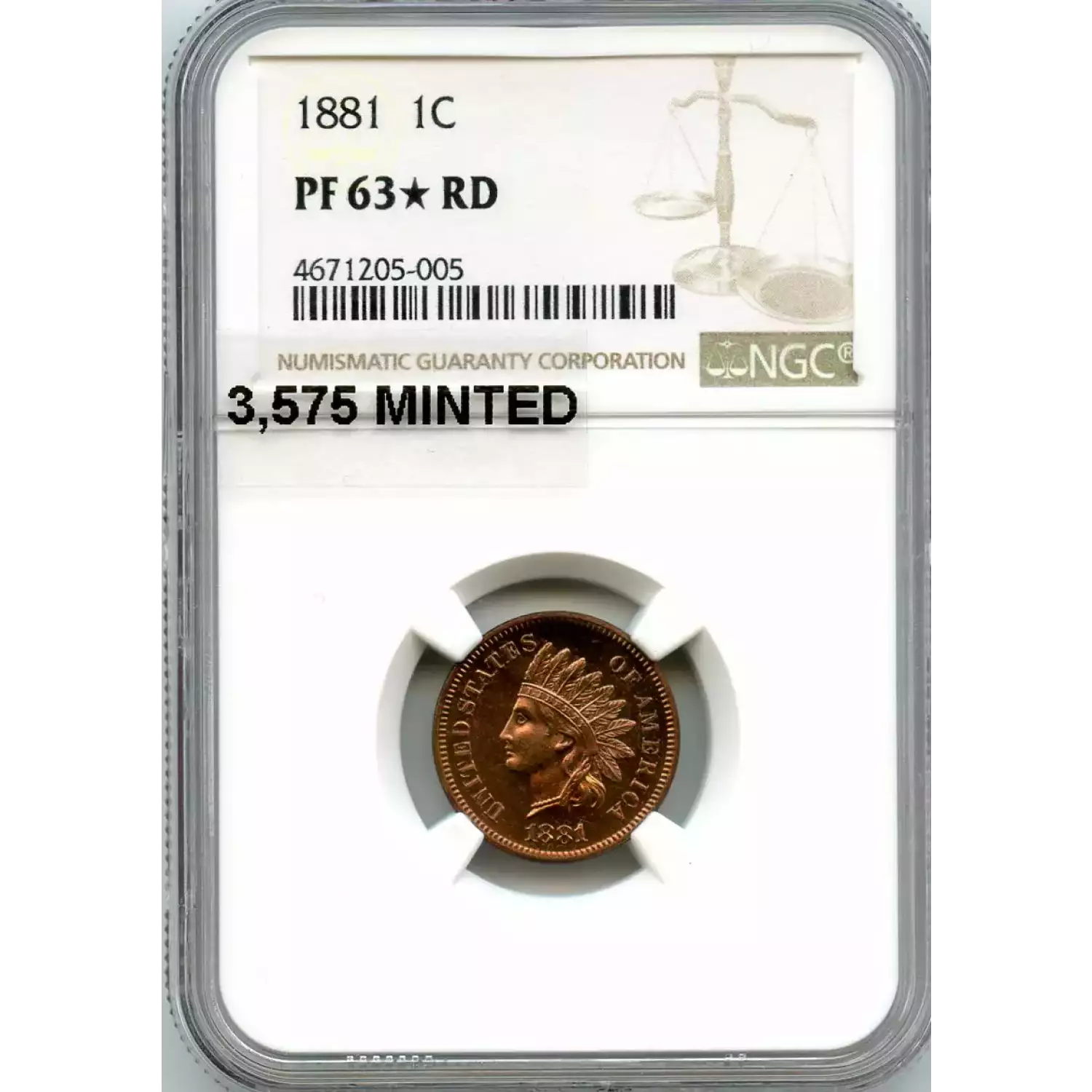 513679 | 1881-PR-63* Small Cents Lincoln, Memorial Reverse NGC PR-63* RD | NGC | PR-63* | Sold: 08/04/2020 | $525 |