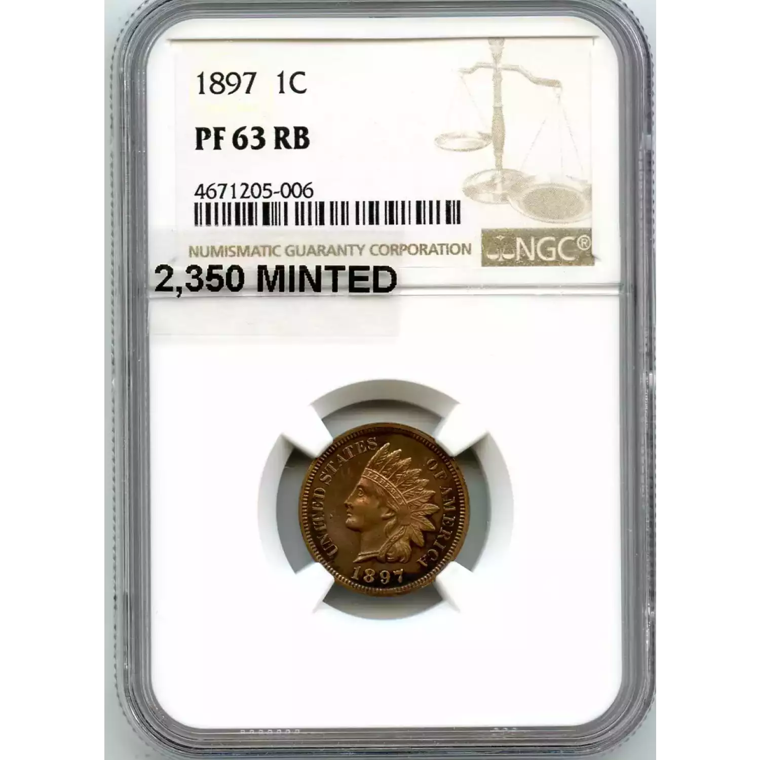 512581 | 1897-PR-63 Small Cents Lincoln, Memorial Reverse PCGS PR-63 RB | PCGS | PR-63 | Sold: 05/02/2019 | $250 |