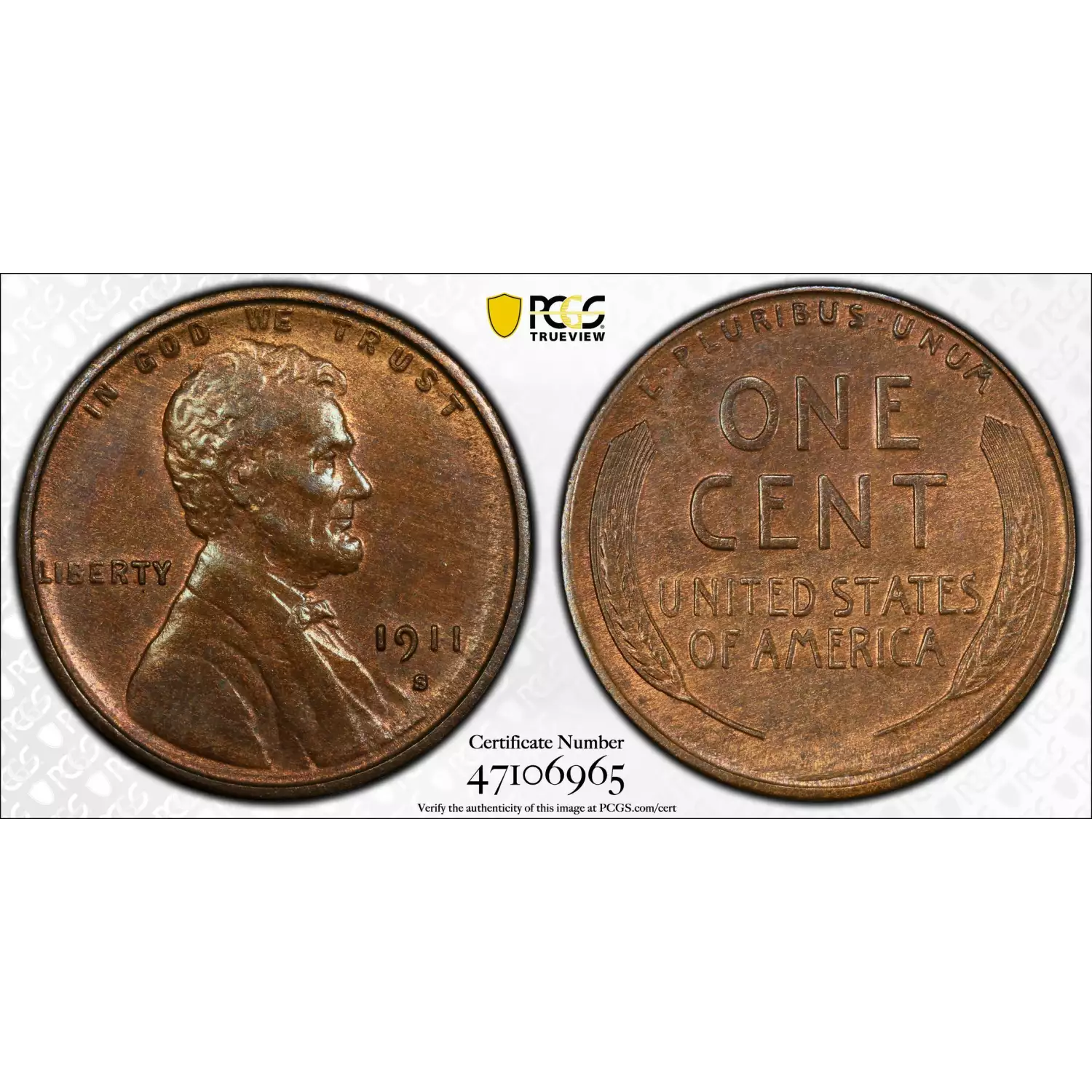 520927 | 1911-S Small Cents Lincoln, Wheat Ears Reverse PCGS MS-63 RB | PCGS | MS-63 | Sold: 29/12/2023 | $590 |