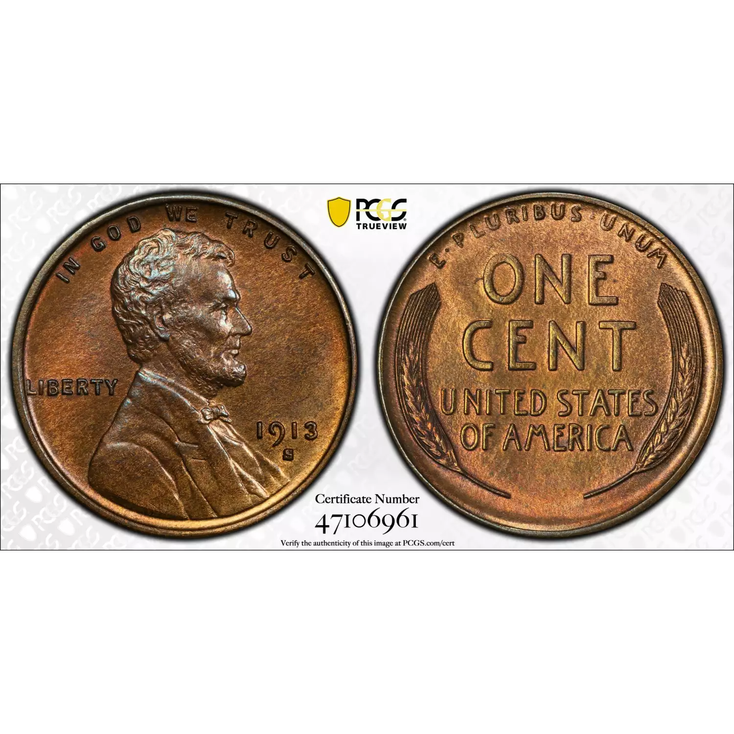 520929 | 1913-S Small Cents Lincoln, Wheat Ears Reverse PCGS MS-65 RB | PCGS | MS-65 | Sold: 18/12/2023 | $1,975 |