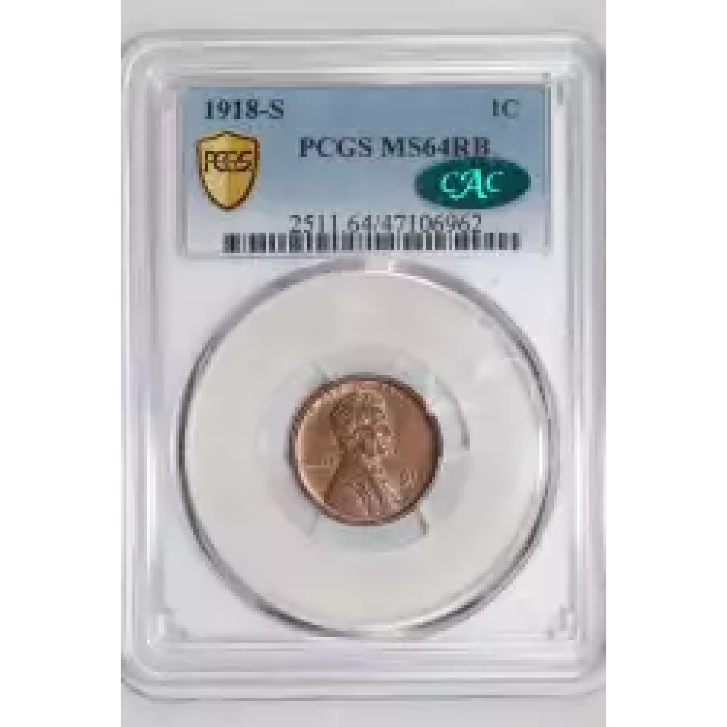 520933 | 1918-S Small Cents Lincoln, Wheat Ears Reverse PCGS MS-64 RB CAC | PCGS | MS-64 | Sold: 15/01/2024 | $775 |