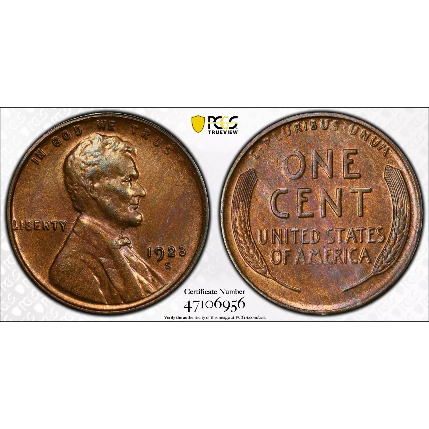 520937 | 1923-S Small Cents Lincoln, Wheat Ears Reverse PCGS MS-63 BN | PCGS | MS-63 | Sold: 06/12/2023 | $750 |