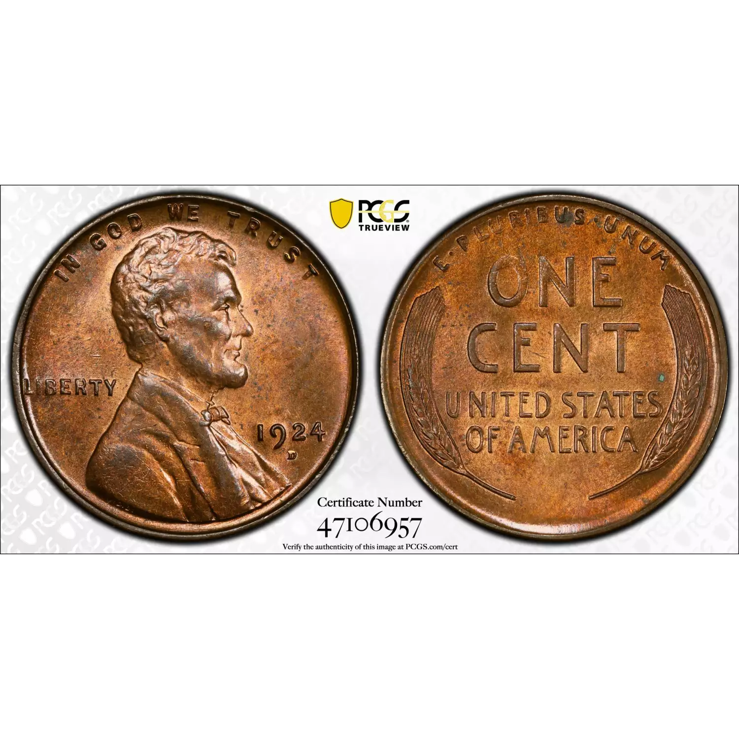 520939 | 1924-D Small Cents Lincoln, Wheat Ears Reverse PCGS MS-63 RB | PCGS | MS-63 | Sold: 18/12/2023 | $875 |