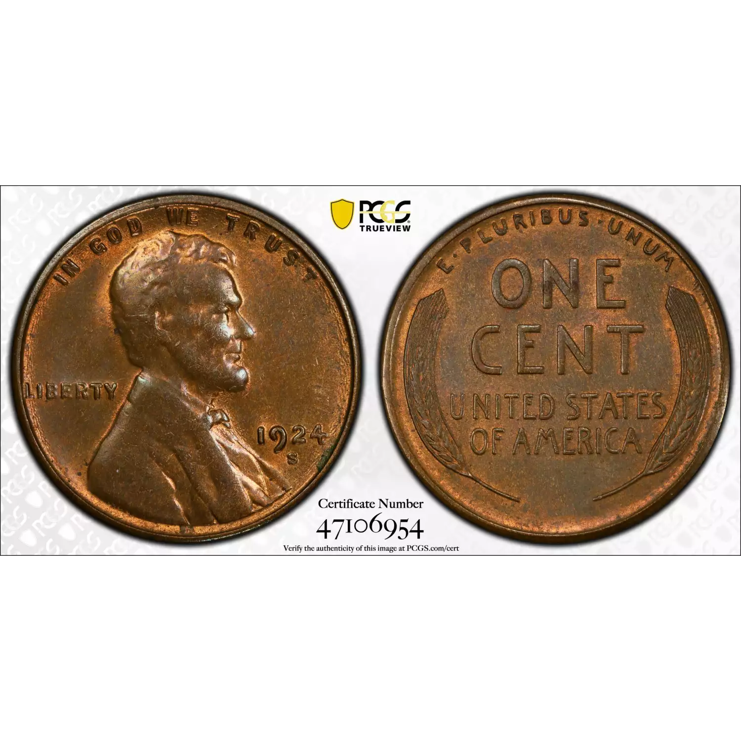 520940 | 1924-S Small Cents Lincoln, Wheat Ears Reverse PCGS MS-63 BN | PCGS | MS-63 | Sold: 06/12/2023 | $450 |