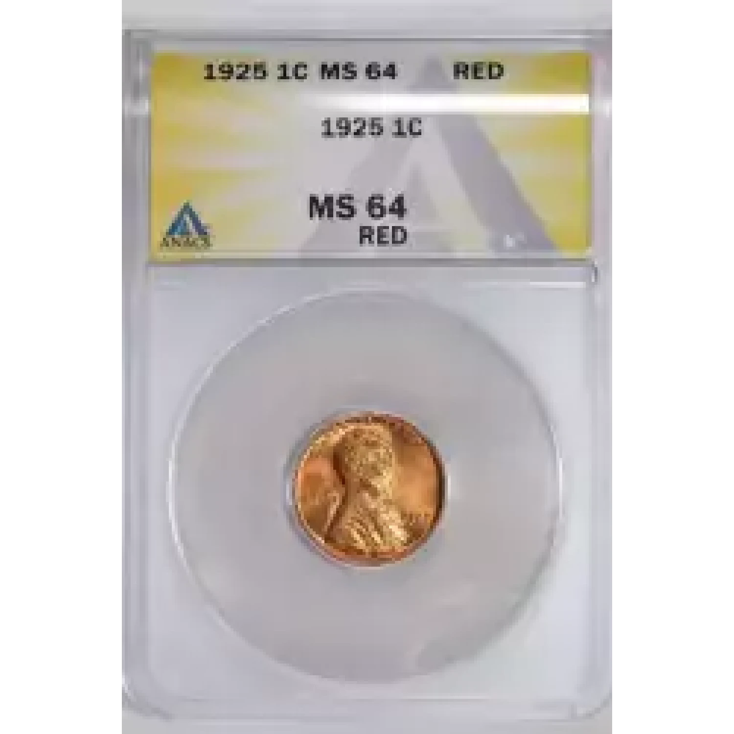 502631 | 1925 Small Cents Lincoln, Wheat Ears Reverse ANACS MS-64 | ANACS | MS-64 | Sold: 14/08/2022 | $95 |