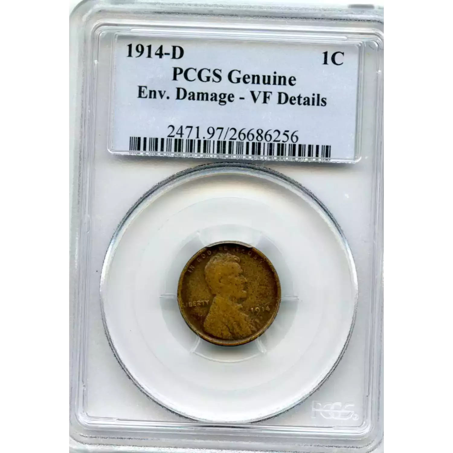 506870 | 1914-Genuine (97 - Environmental Damage) Small Cents Lincoln, Wheat Ears Reverse PCGS Genuine (97 - Environmental Damage) | PCGS | Genuine (97 - Environmental Damage) | Sold: 27/09/2014 | $150 |