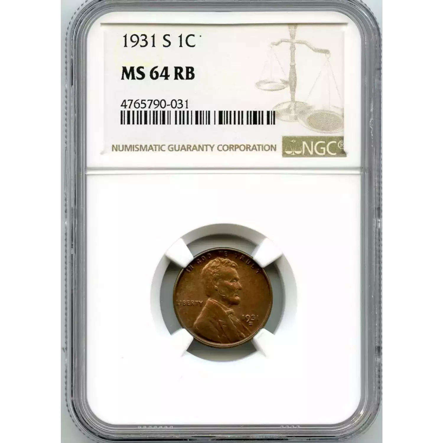 517297 | 1931 Small Cents Lincoln, Wheat Ears Reverse NGC MS-64 RD | NGC | MS-64 | Sold: 12/07/2023 | $150 |