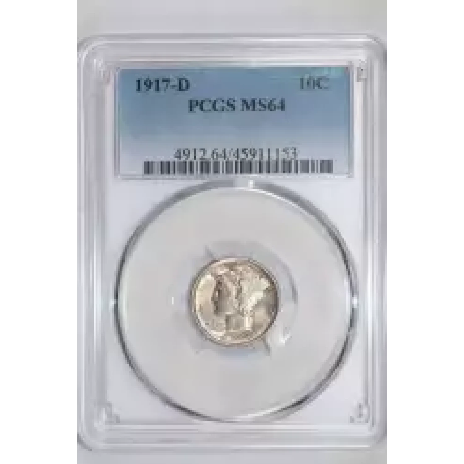 517608 | 1917-D Dimes Winged Liberty Head or Mercury PCGS MS-64 | PCGS | MS-64 | Sold: 13/04/2023 | $410 |