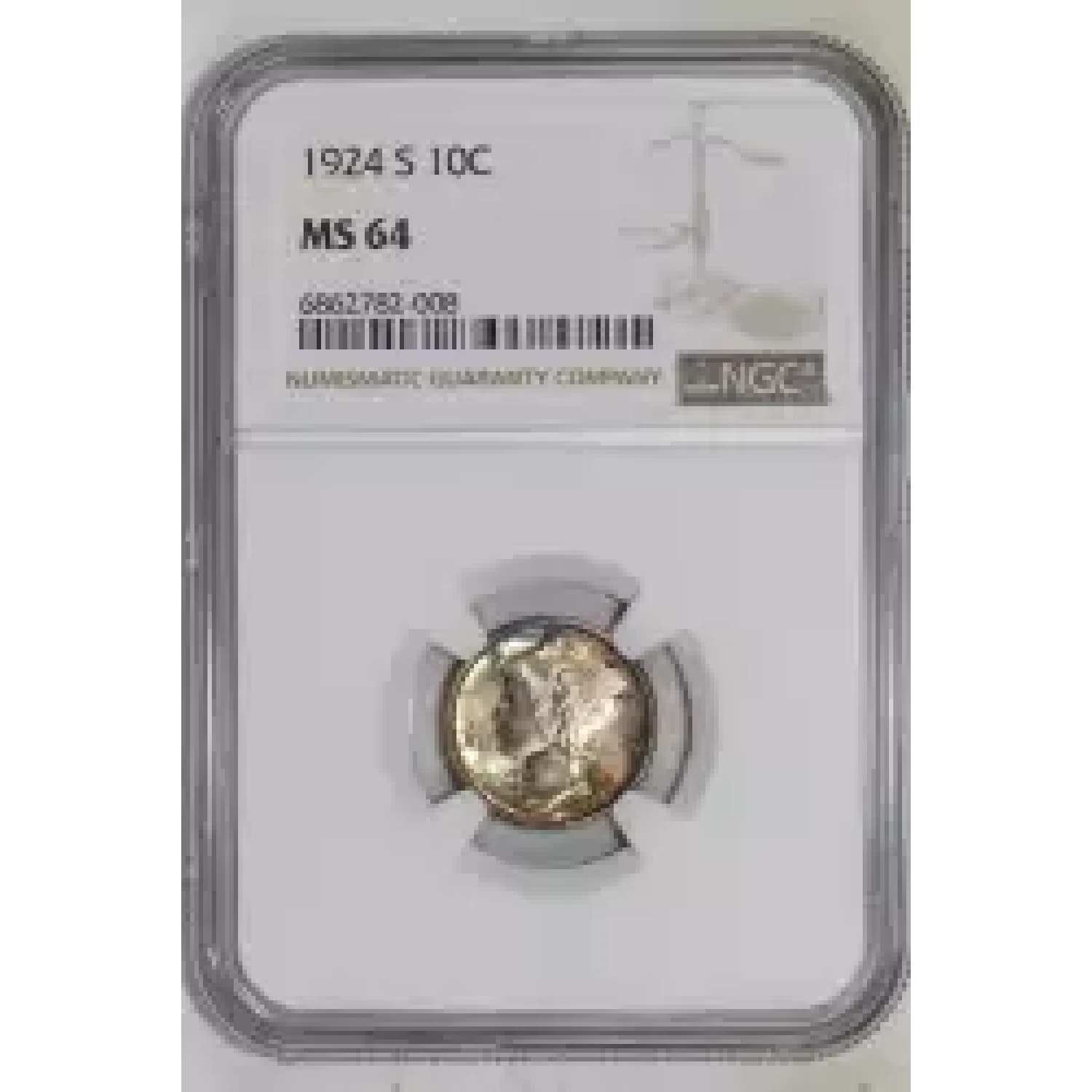 520802 | 1924 Dimes Winged Liberty Head or Mercury NGC MS-64 FB | NGC | MS-64 | Sold: 08/03/2024 | $550 |