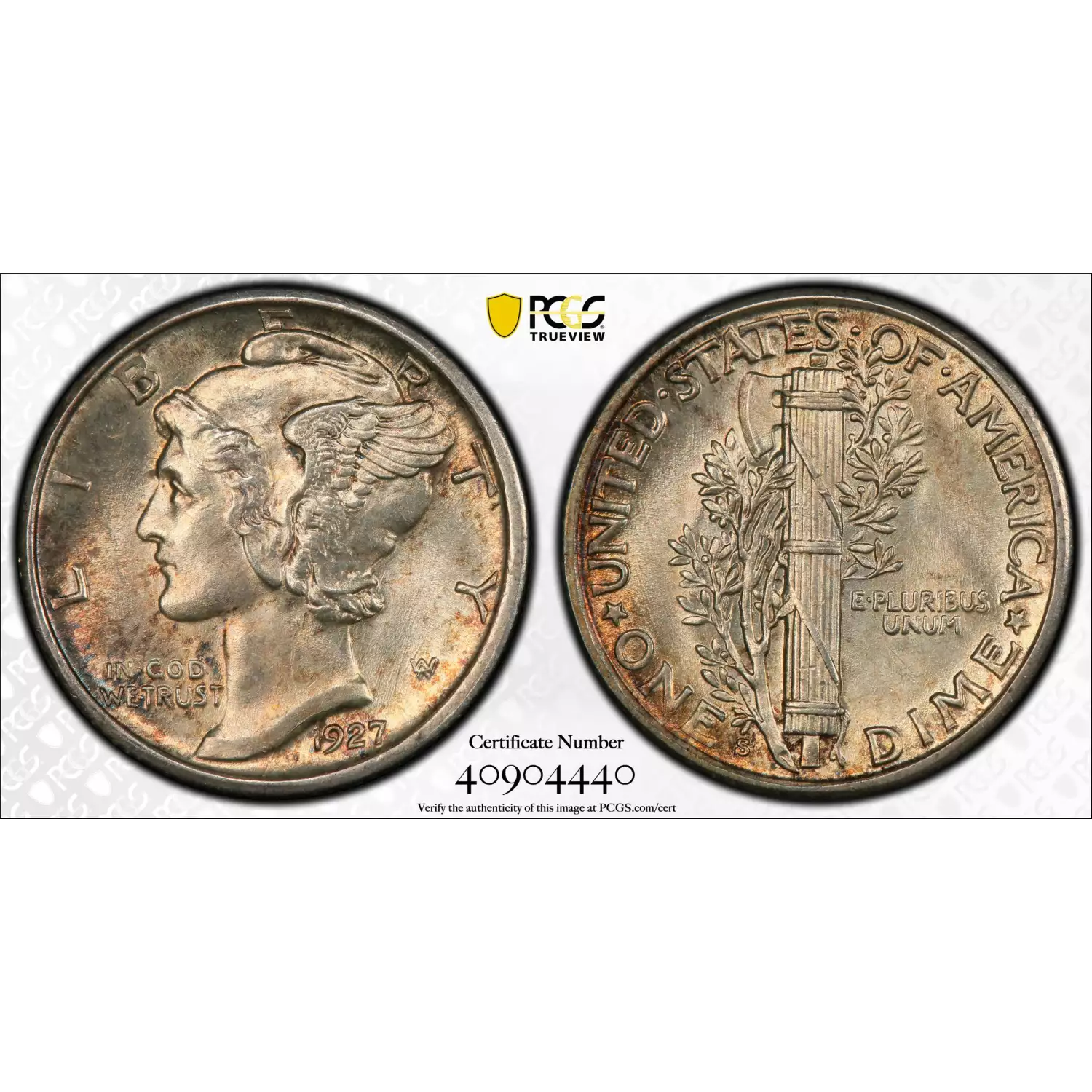 506196 | 1927-MS-66 Dimes Winged Liberty Head or Mercury PCGS MS-66 | PCGS | MS-66 | Sold: 25/07/2012 | $300 |