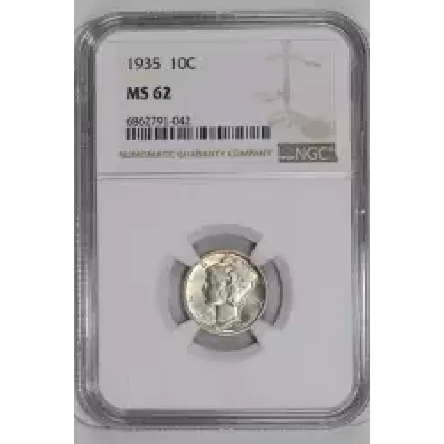 521020 | 1935 Dimes Winged Liberty Head or Mercury NGC MS-62 | NGC | MS-62 | Sold: 07/08/2024 | $35 |