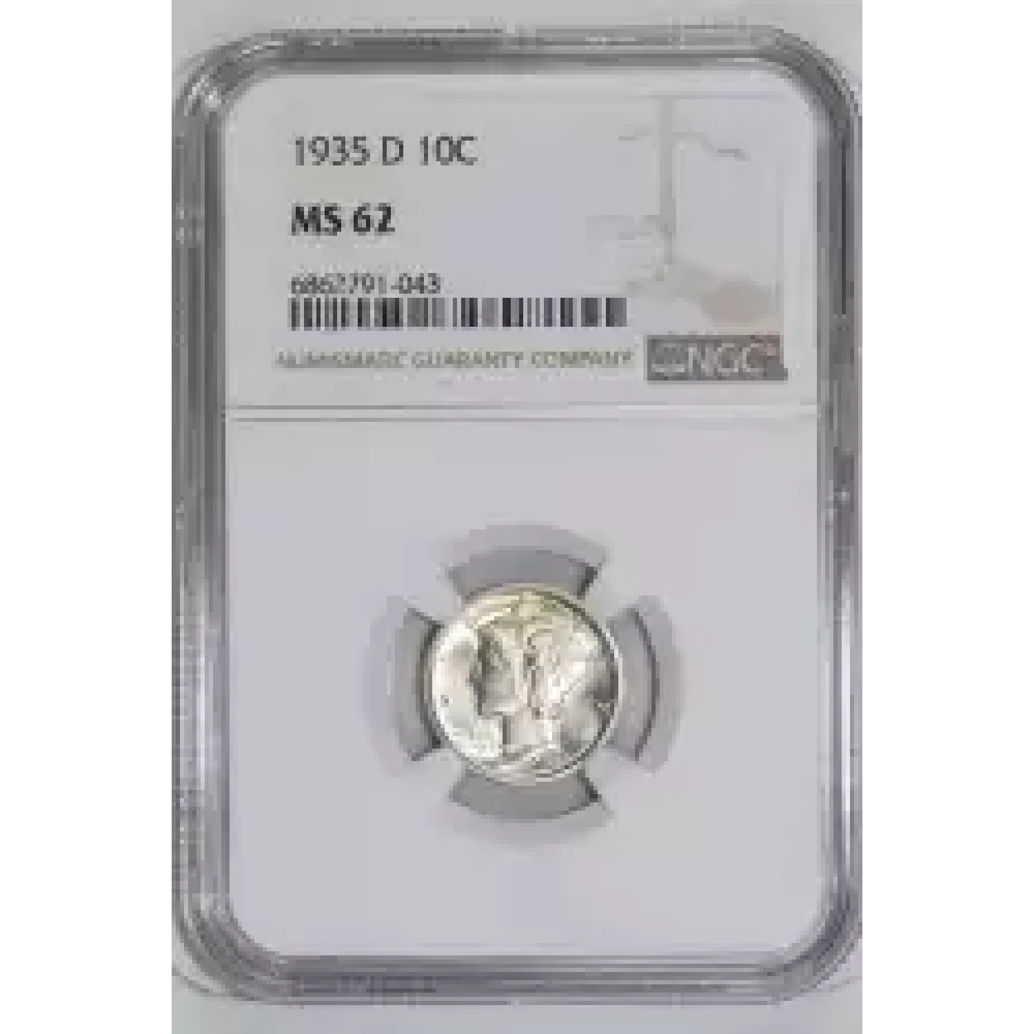 521021 | 1935-D Dimes Winged Liberty Head or Mercury NGC MS-62 | NGC | MS-62 | Sold: 29/12/2023 | $50 |
