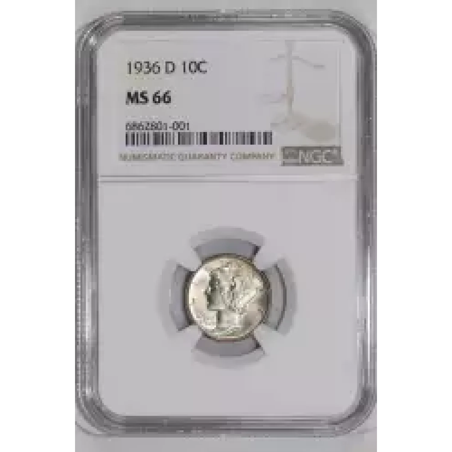 506194 | 1936-MS-66 Dimes Winged Liberty Head or Mercury PCGS MS-66 FB | PCGS | MS-66 | Sold: 21/07/2012 | $137.01 |