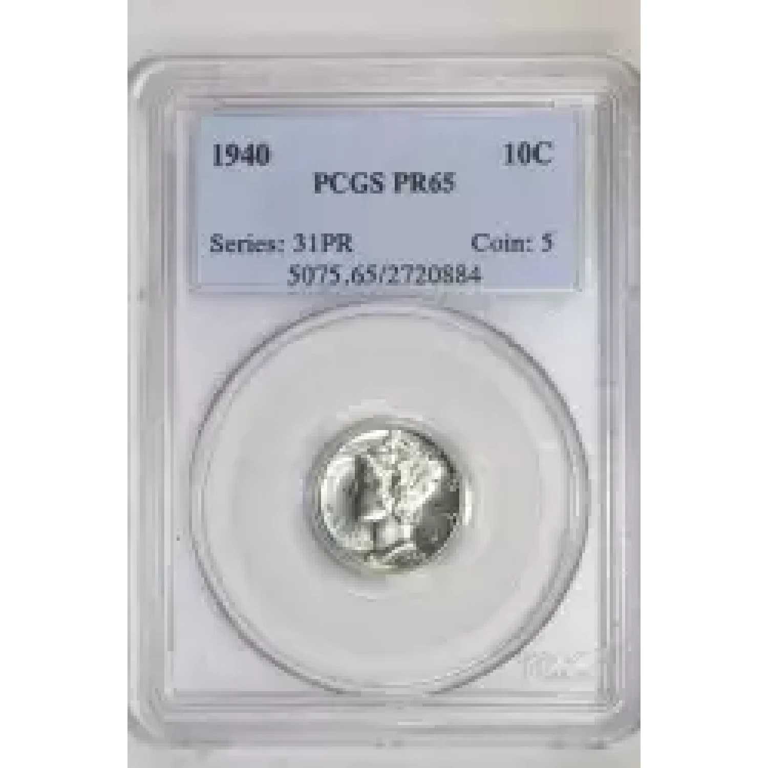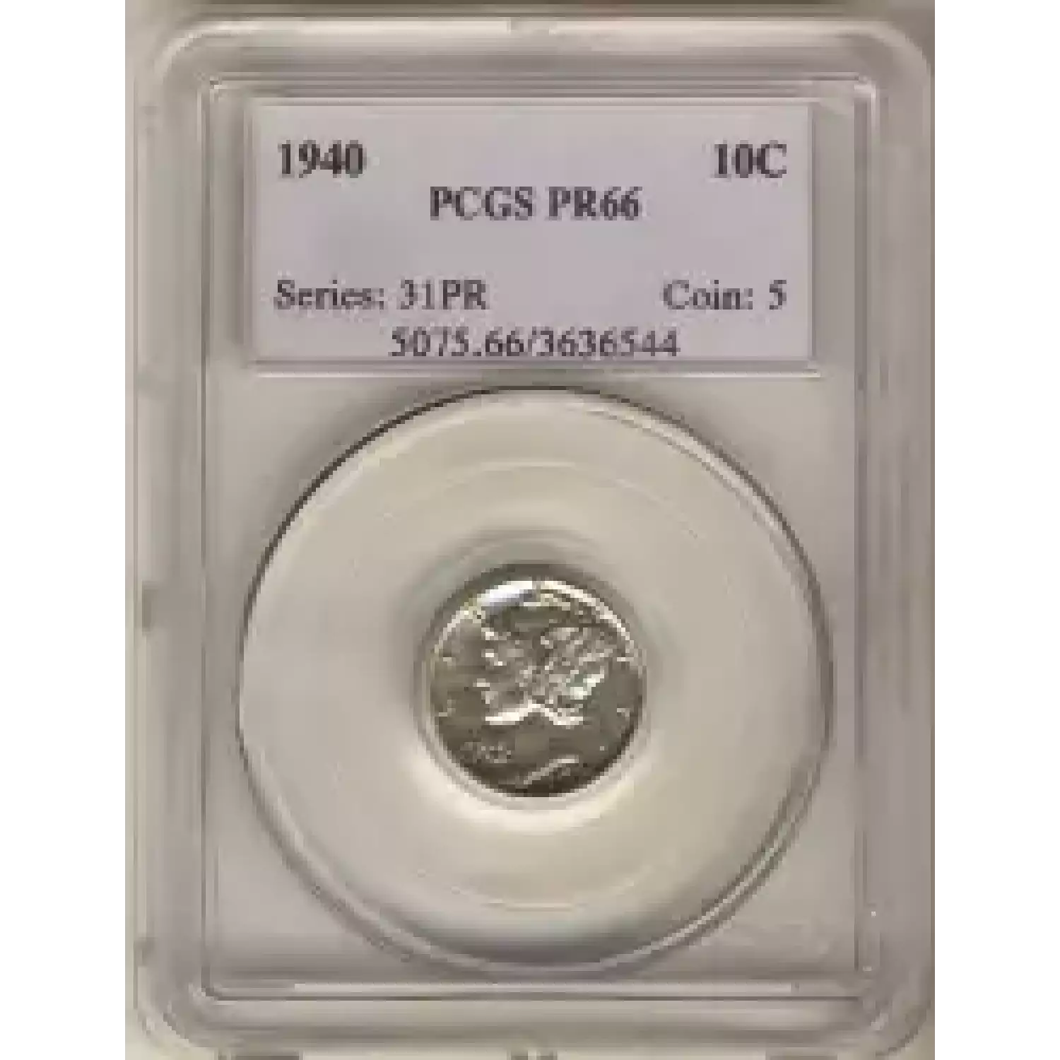 504862 | 1940-PR-66 Dimes Winged Liberty Head or Mercury PCGS PR-66 | PCGS | PR-66 | Sold: 15/06/2009 | $265 |