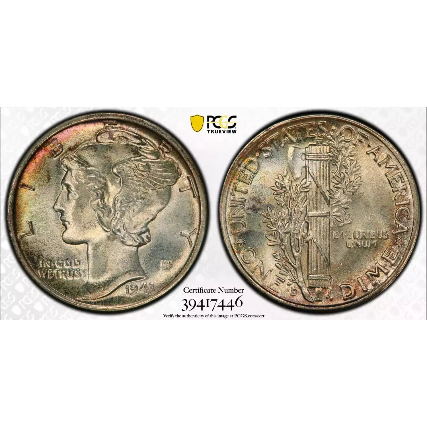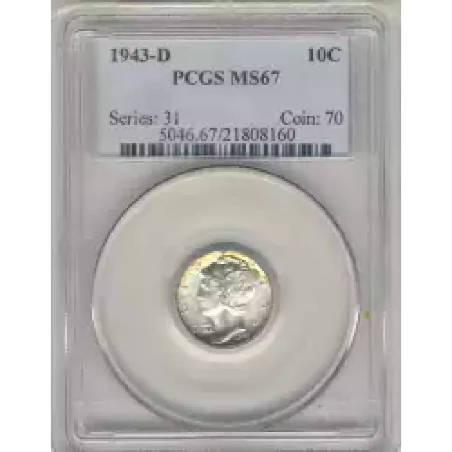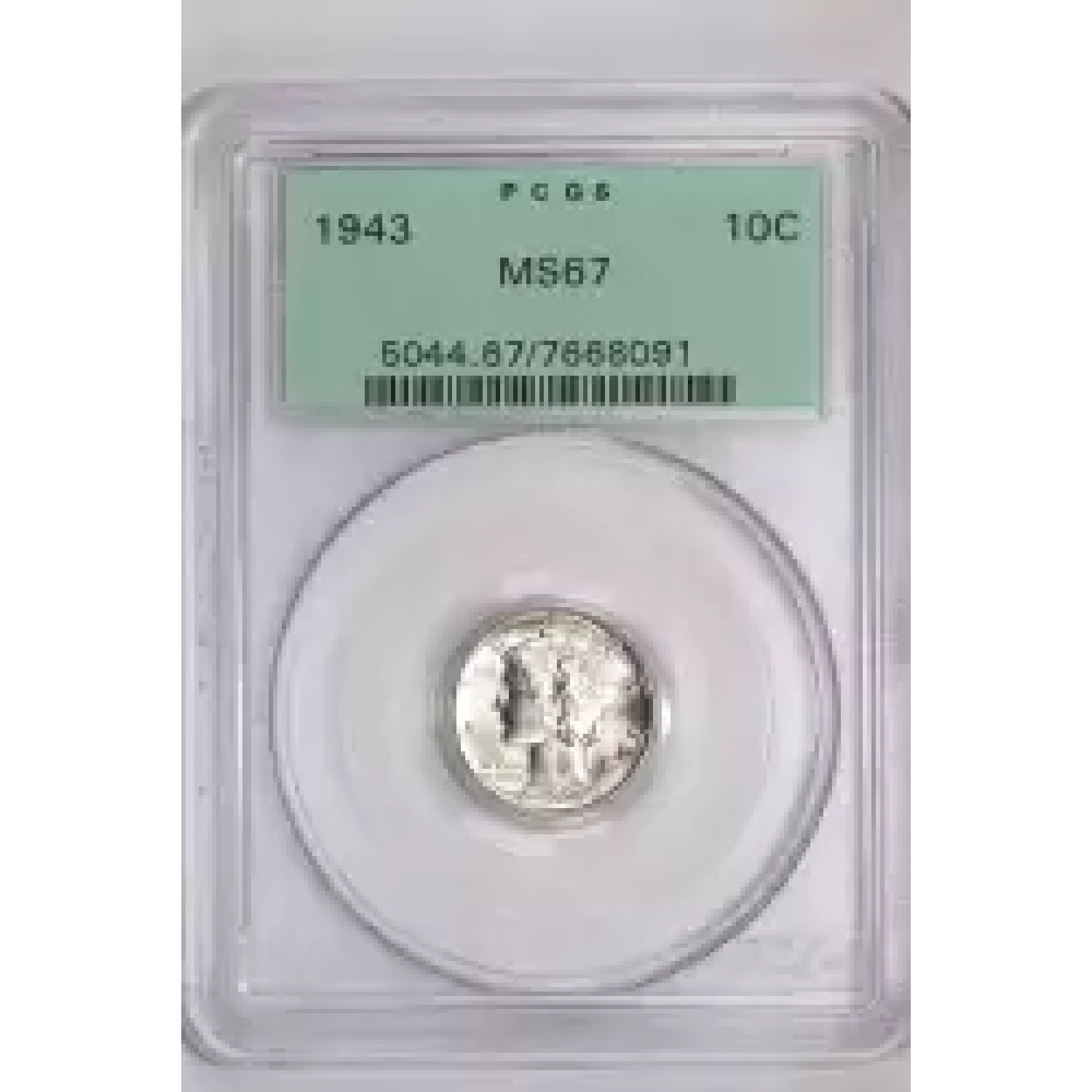 506213 | 1943-MS-67 Dimes Winged Liberty Head or Mercury PCGS MS-67 | PCGS | MS-67 | Sold: 21/07/2012 | $56.29 |