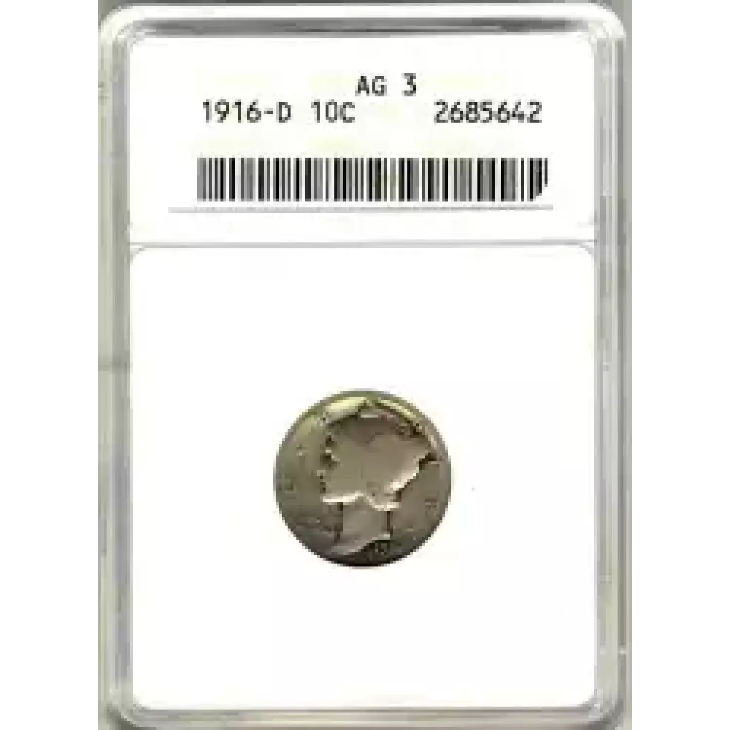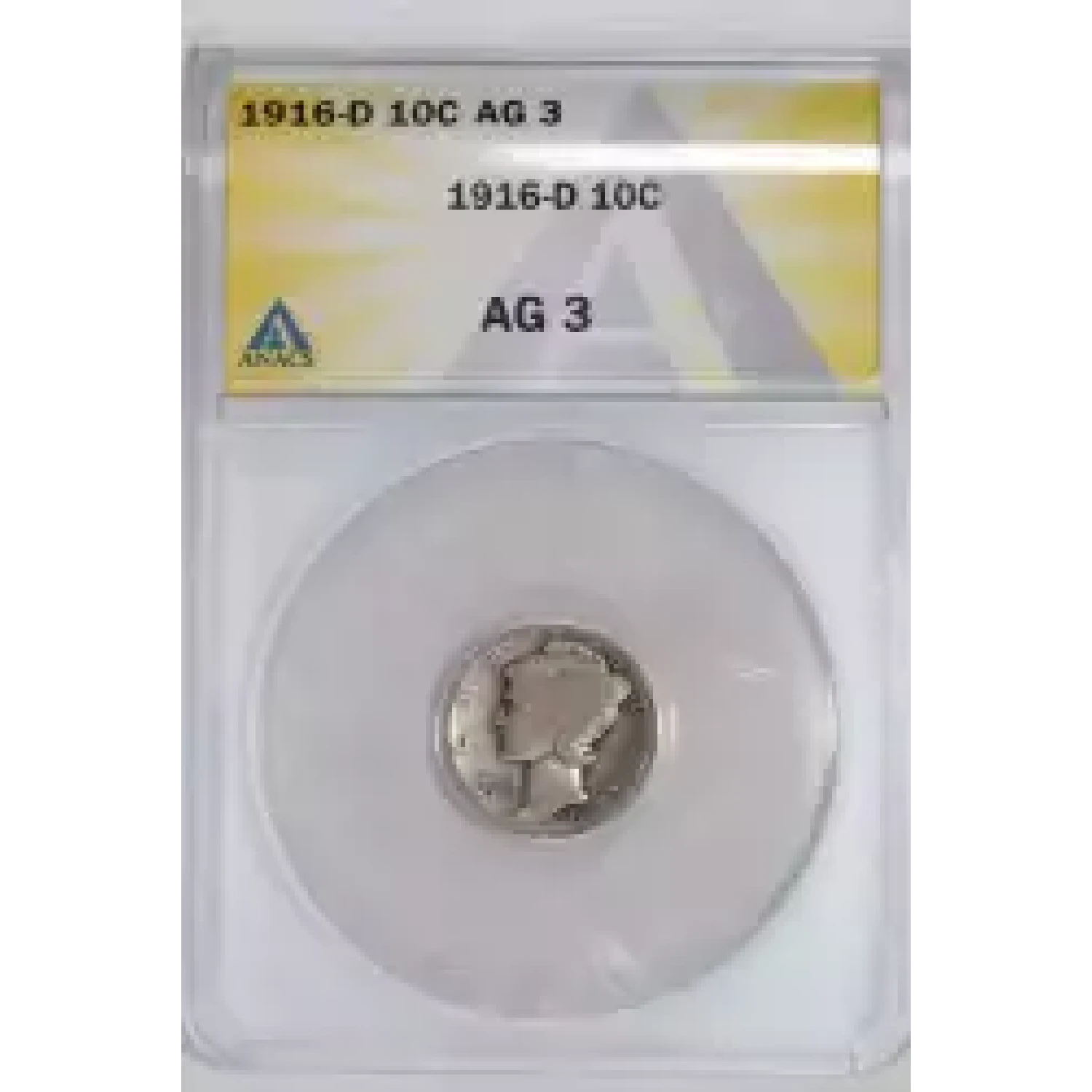502658 | 1916-D Dimes Winged Liberty Head or Mercury ANACS AG-3 | ANACS | AG-3 | Sold: 18/07/2022 | $800 |