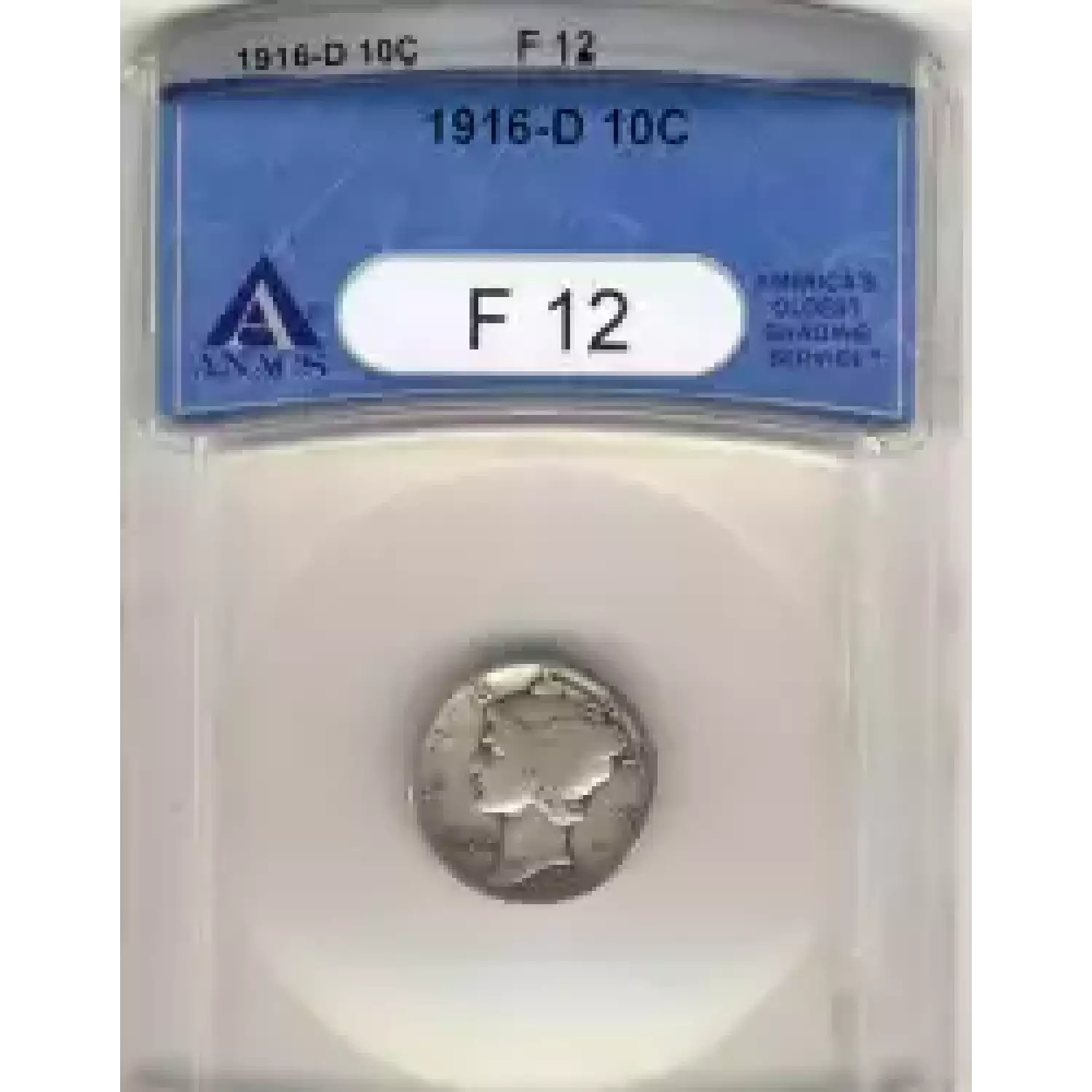 502971 | 1916-F-12 Dimes Winged Liberty Head or Mercury ANACS F-12 | ANACS | F-12 | Sold: 15/07/2006 | $2,400 |