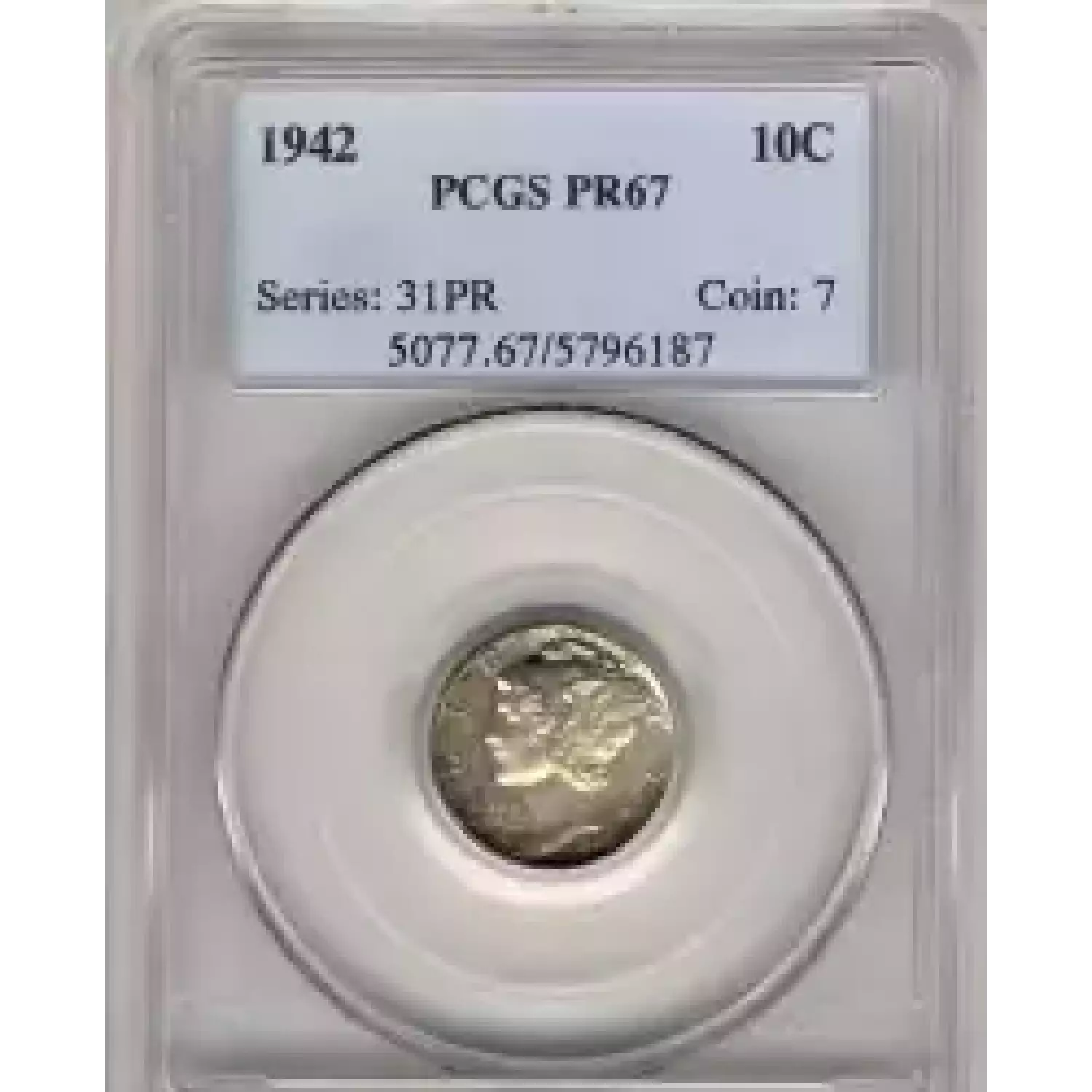503852 | 1942-PR-67 Dimes Winged Liberty Head or Mercury PCGS PR-67 | PCGS | PR-67 | Sold: 11/08/2012 | $258 |