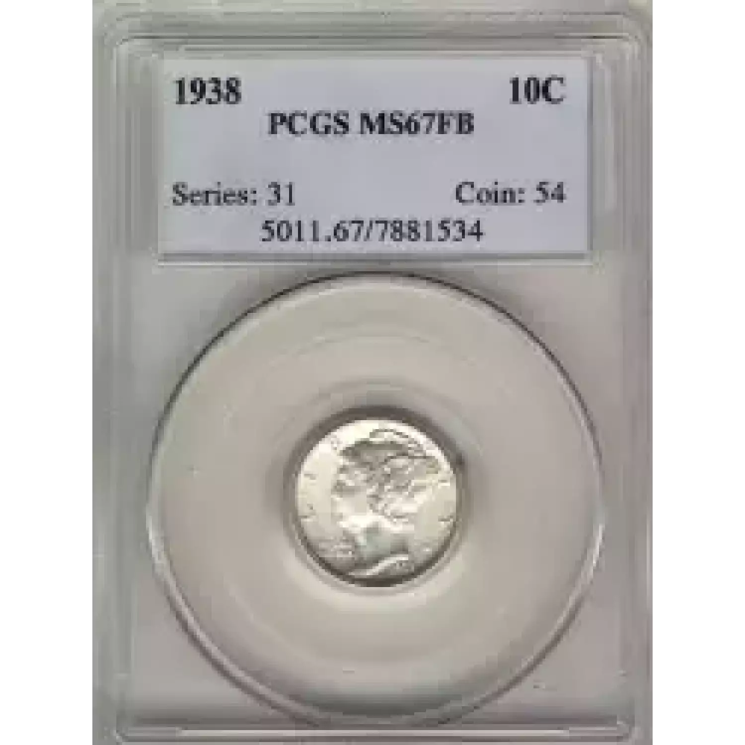 503934 | 1938-MS-67 Dimes Winged Liberty Head or Mercury PCGS MS-67 FB | PCGS | MS-67 | Sold: 02/12/2006 | $300 |